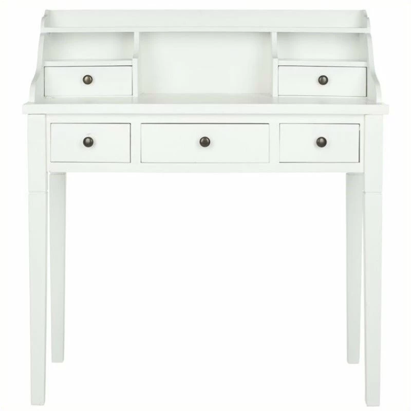The Writing Desk in white finish reminds us of the old-fashioned dark mahogany roll top desk with the storage cubbies. This is the perfect writing desk for the home office, bedroom or even in the kitchen as a kids’ homework station, its drawers and cubbies organize your office essentials.