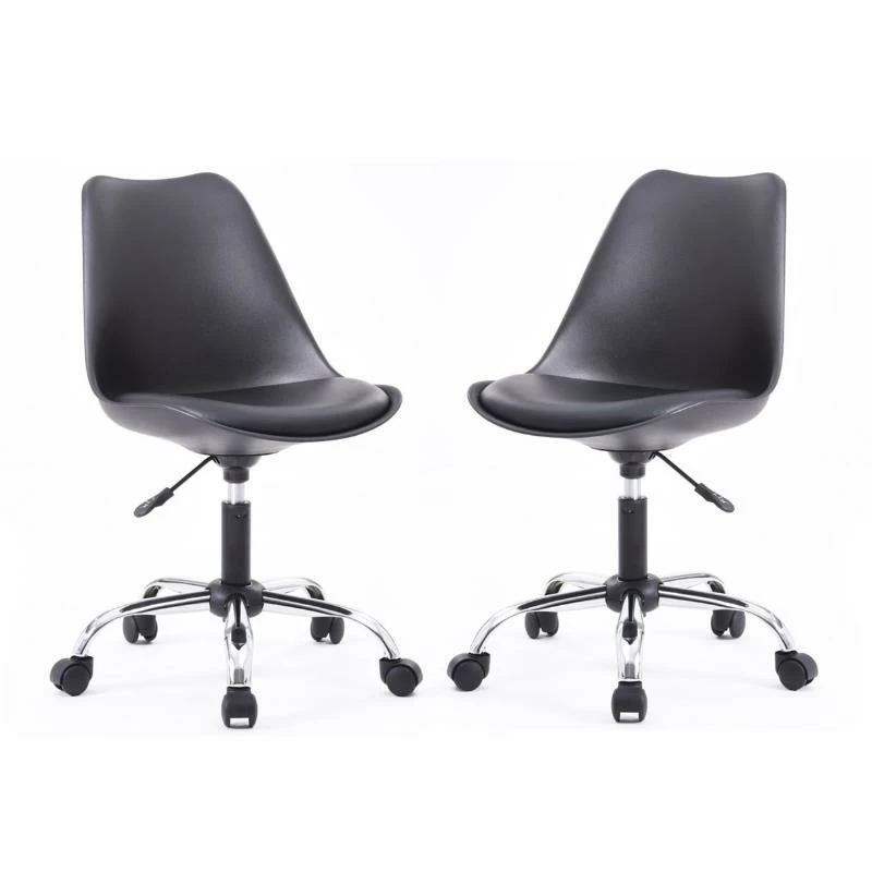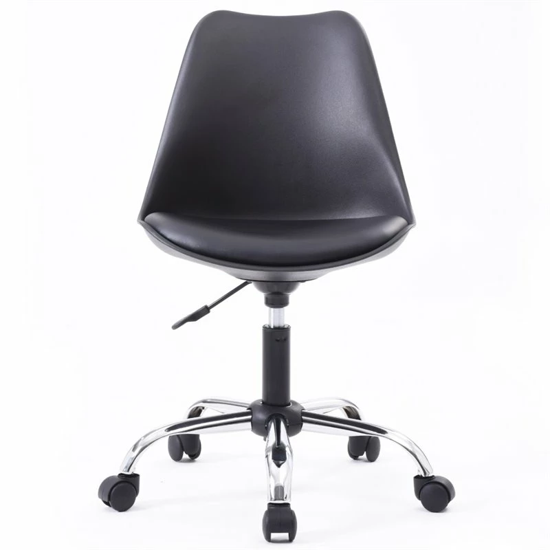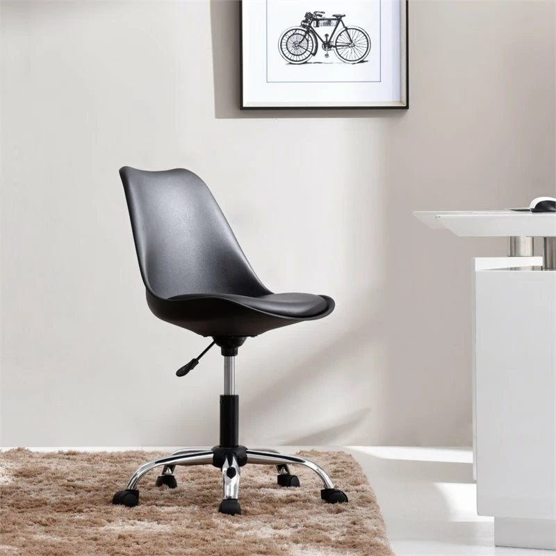 Spruce up the look of your home or office with this Home Square Armless Swivel Office/Desk Chair. Fitted with a cushion on the bucket seat, this chair is extra comfy while you work. The chrome base perfectly complements the solid black color in faux leather, ensuring this fashionable and functional chair blends seamlessly with your work area. It features an ergonomic design with a pneumatic gas lift height adjustment for comfortable positioning that lets you work for long hours on your PC. This armless office/desk chair presents a classy executive look, making it a great choice for office or home workspace.