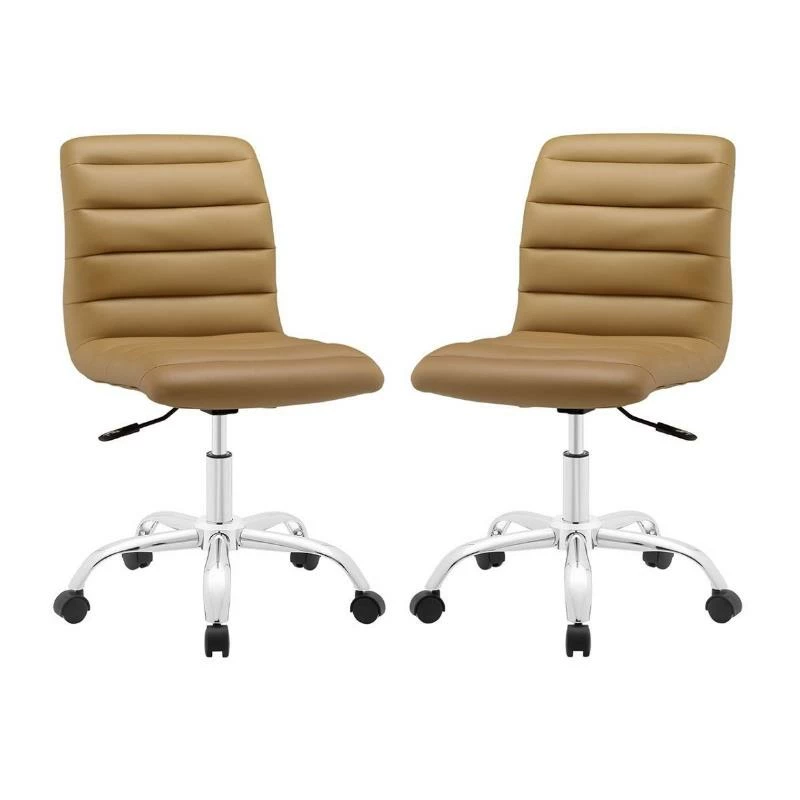 - Mid Back Armless Swivel Office Chair in Tan x 2