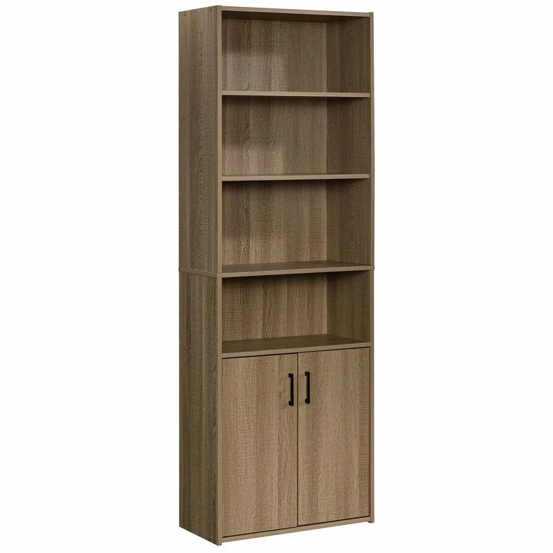 - Modern 4-Shelf Wood Bookcase with Doors in Summer Oak x 1