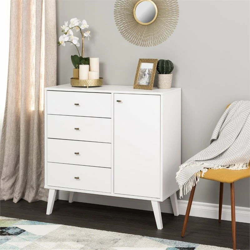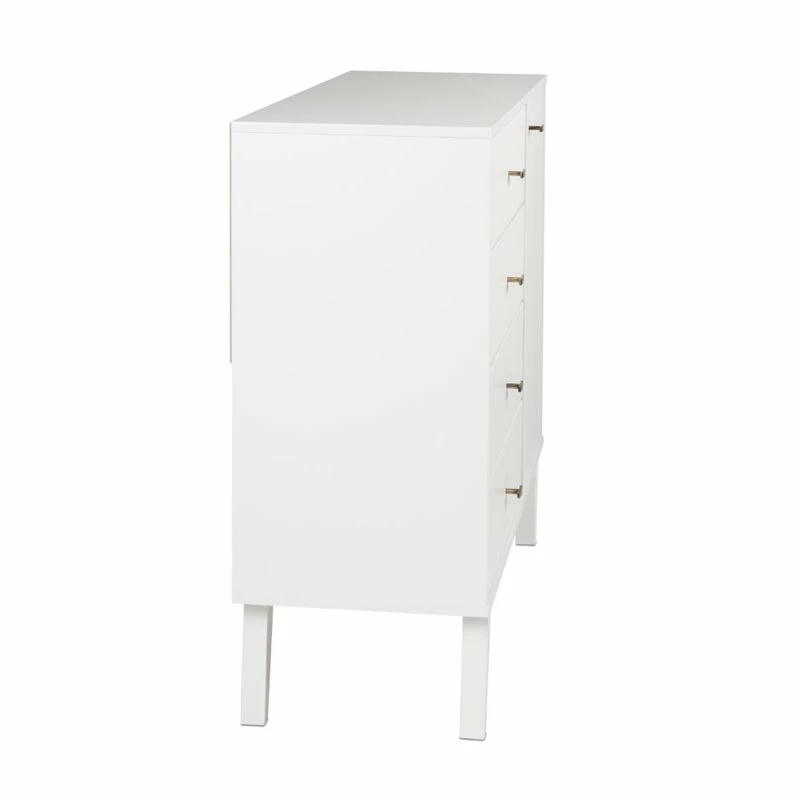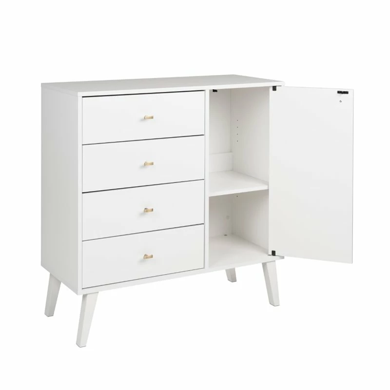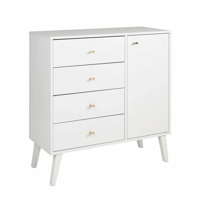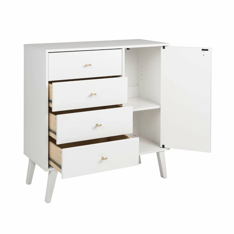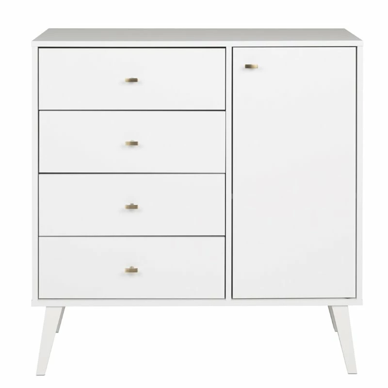 Mid Century Modern 4 Drawer Chest with Door in White