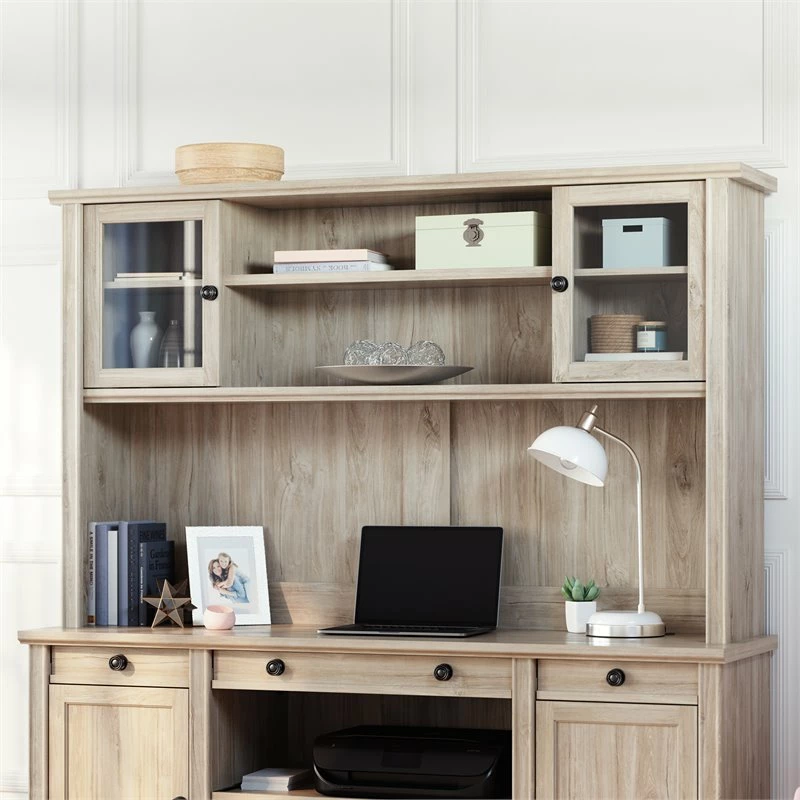 Engineered Wood and Tempered Glass Doors Hutch in Chalked Oak