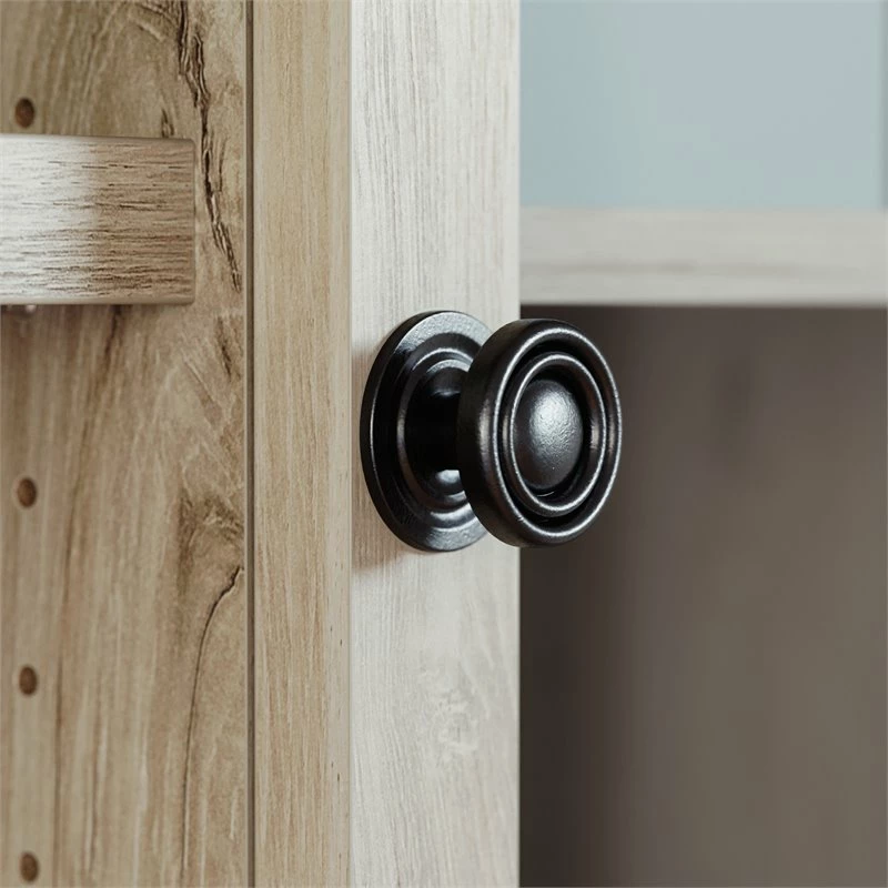 A home office credenza adds display and storage space in one stylish accent piece. The office credenza from the ® collection complements the pieces you already own while adding a touch of fresh style into your home. With a durable, 1″ thick top this double pedestal credenza has a top surface you can use to display pictures of your loved ones, pieces of home décor that make the office feel like “home,” and of course, essential office supplies like a lamp or binders. All three drawers of this wood storage credenza feature full extension slides for ease of use. Behind each door is an adjustable shelf so you can customize your credenza to accommodate your items of various heights. A pull-out, adjustable printer shelf means that your printer is always close by and has no need to be tucked away in a storage cabinet. This credenza desk features a cord management system that includes two desktop grommet holes to keep your electrical cords organized and out of sight. With solid wood feet detailing and a Chalk Oak finish, this wood storage credenza adds style and much needed storage to any room it’s in.