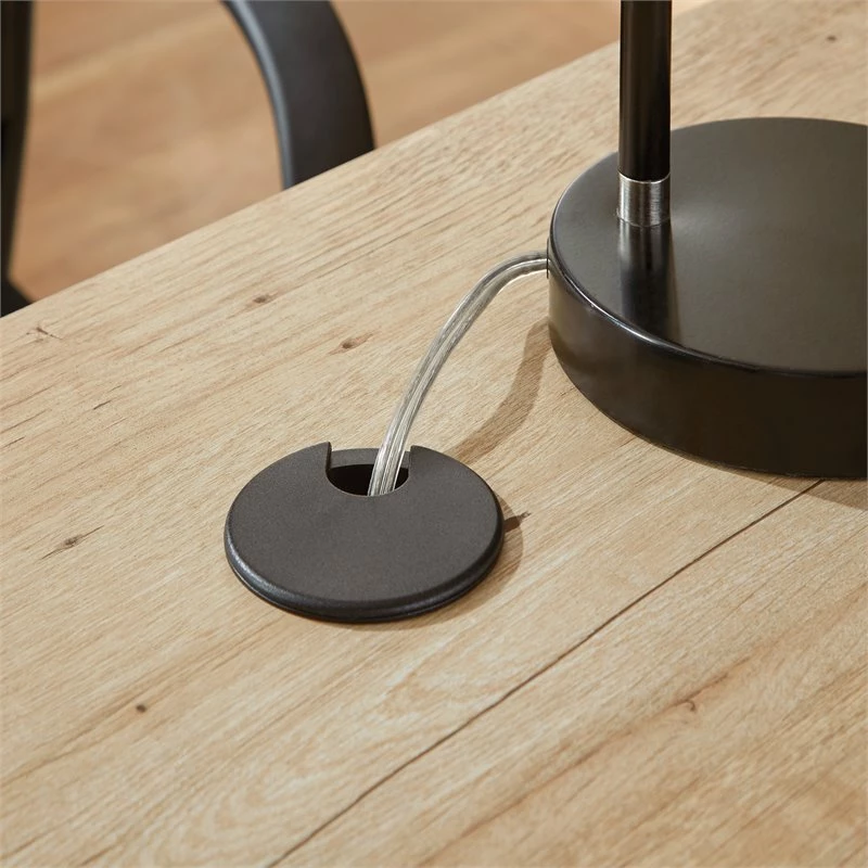 - Cord management system includes two desk top grommets to prevent cord clutter.