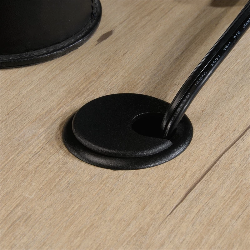 - Desktop grommets allow for easy to reach and organized electronic cords.