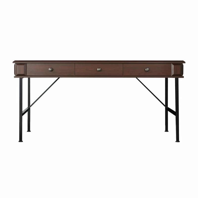 3-Drawer Farmhouse Wood Writing Desk in Cherry/Black
