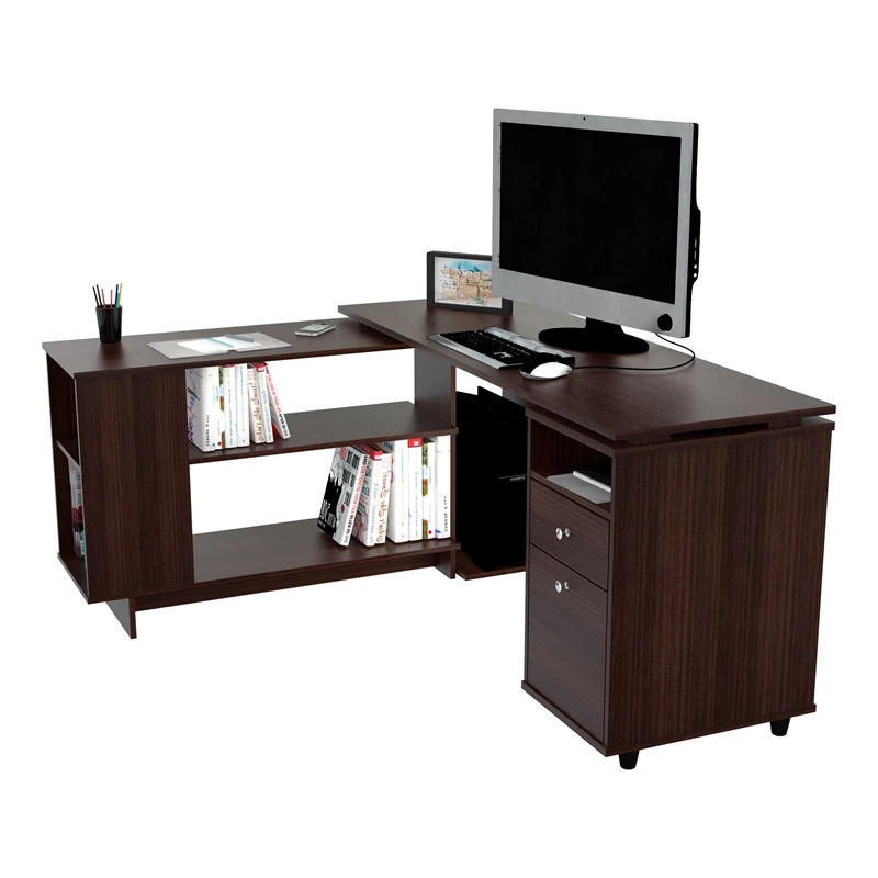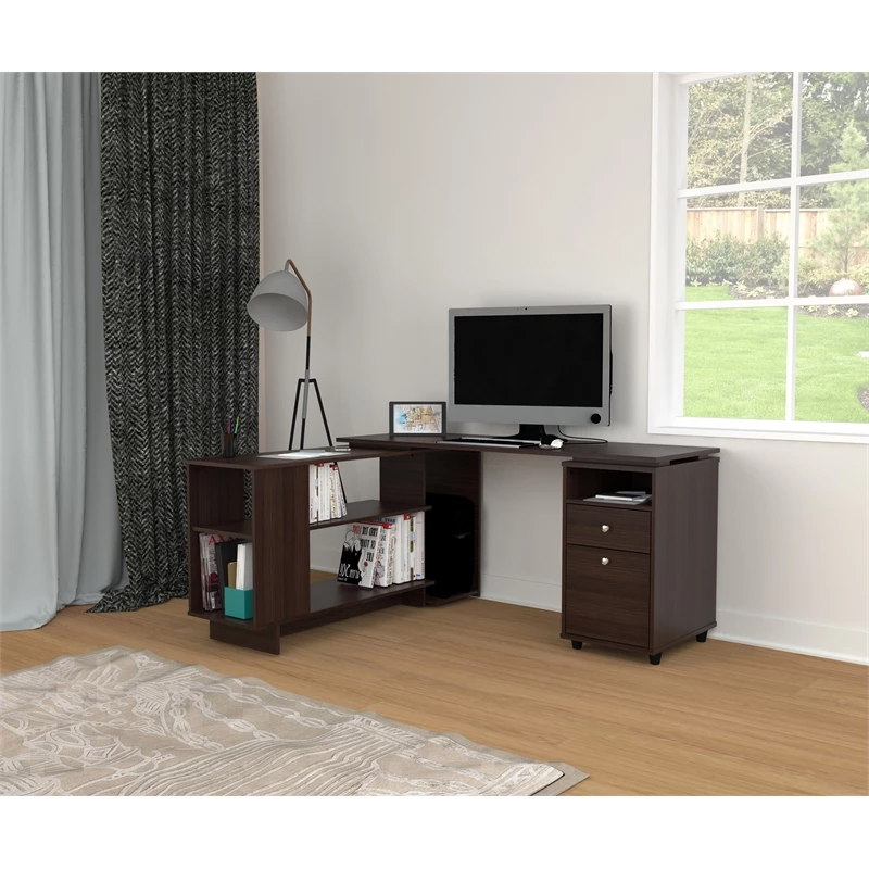 L-Shaped Engineered Wood Reversible Computer Desk in Espresso