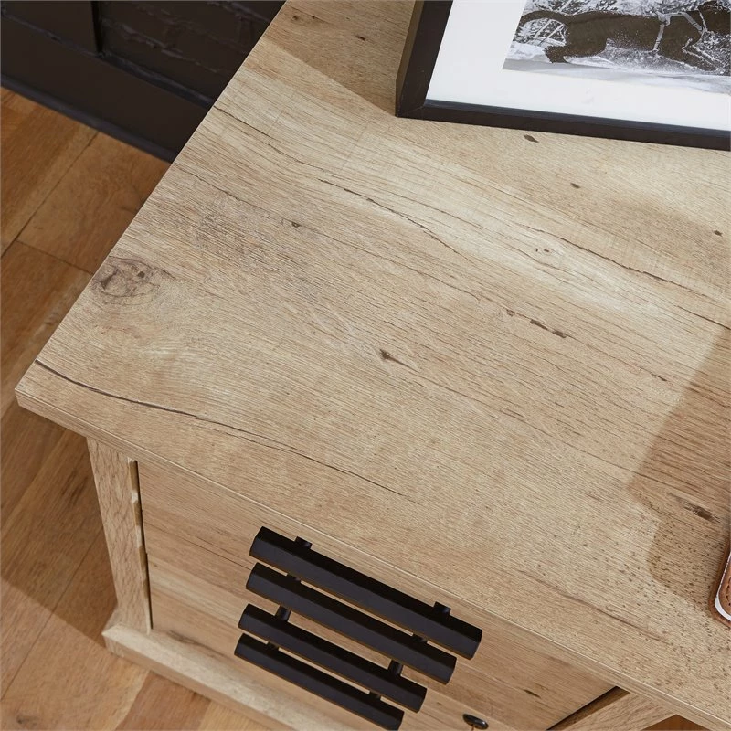 This credenza from the ™ collection elevates your office from a one-desk space, to a professional hub with added storage. This unit comes with the pedestals and drawers pre-assembled to aide in the assembly of your new office credenza. This credenza desk is fitted with a strong and lightweight, 1″ thick top with plenty of room for binders, books, a clock or home décor items. The melamine top surface is heat, stain, and scratch resistant, raising this unit to commercial office furniture standards. Three drawers feature full extension slides for ease of use as the file drawer and one storage drawer lock for security of your most important items. This office storage credenza holds letter, legal, or European size hanging files. On the right side of this unit, behind a framed panel door, is an adjustable shelf for storage of extra office suppliers, large books, and more. With cord management including desk top grommets, your resimercial credenza will not be cluttered with electrical cords. This office credenza with storage is finished on all sides for versatile placement in any office – it will look polished from every angle. Finished in a light Prime Oak™, this wood credenza brings a warm style and woodsy aesthetic to a professional office setting.