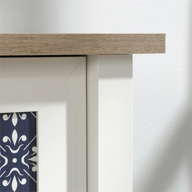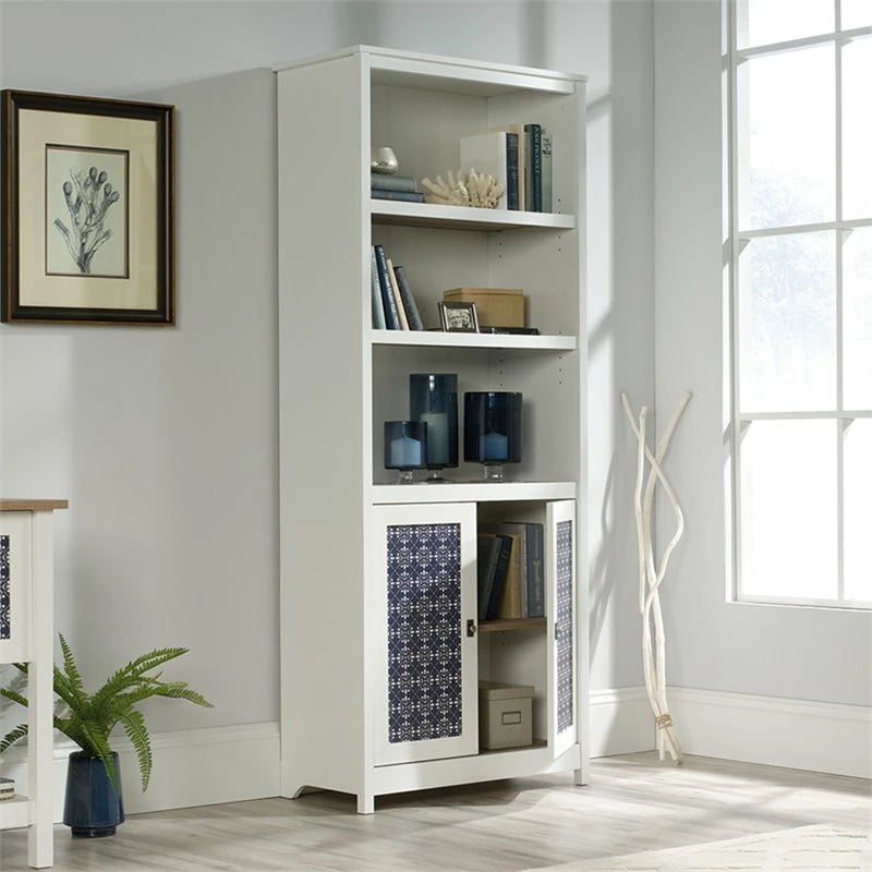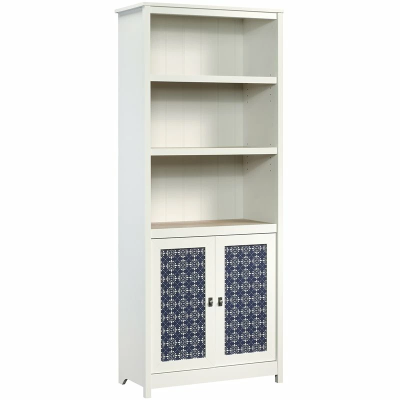 Style and storage all in one. Add some modern design to your home while creating the additional storage space that you need with the library with doors from the Home Square collection. This library bookcase features three spacious shelves that are perfect for storing and displaying a variety of different items like stacks of books, decorative plants, your collection of knick-knacks and photos of your family and friends. These three shelves are adjustable so they can move to different heights to create flexible storage for items of all shapes and sizes. Behind its double doors, this three-shelf bookcase features a hidden storage area for items you prefer not be seen. Each door front features a decorative tile pattern for an extra touch of detail that is sure to stand out. Finished in soft white with lintel oak accents, this beautiful library bookcase with doors is the perfect addition for your home.
