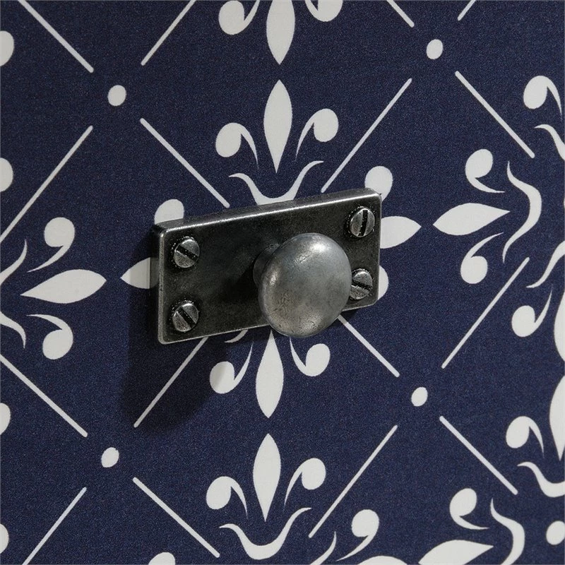 - Drawer fronts feature decorative tile pattern