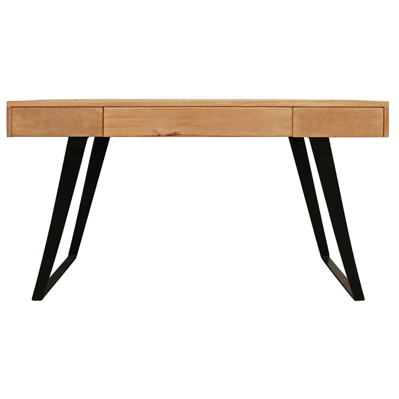 - Sloane Solid Wood 3 Drawer Desk with Cast Iron Legs in Beige/Gray x 1