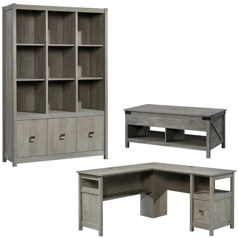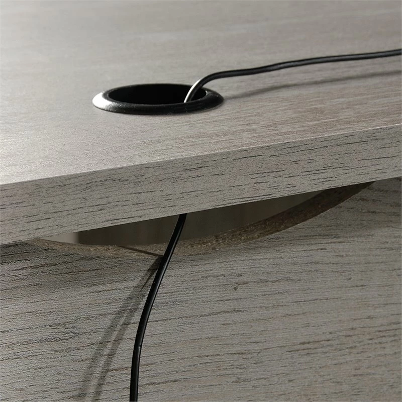 Looking for a simple way to beautify your home office? Well, we’ve got just the solution for you! Add beautiful style along with a tremendous amount of workspace with this L-shaped desk from the Home Square collection. It’s spacious, L-shaped top surface provides you with all the space you need for your must-have desk essentials like your laptop, phone, and a cup full of pens. Don’t worry, there is always space for your coffee mug too. It features a large file drawer with full extension slides to hold letter-size hanging files so you can keep all your important documents organized. It also features an open shelf and a large lower shelf for additional storage of miscellaneous office supplies. The grommet holes and pass-through provide you with a place to conveniently organize and hide all your wires. Finished on all sides in mystic oak, this stunning desk will give your home office the makeover it’s been needing.