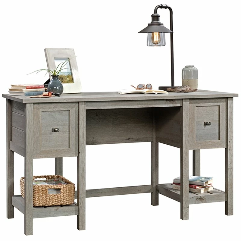 Searching for a little extra motivation? Updating your home office space can do just the trick! Give your home office or work space the style upgrade it needs when you add the charming style and design of this desk from the Home Square collection. This computer desk offers a spacious top surface that provides you with all the room you need for must-have desk essentials like your laptop, stacks of notepads, your collection of pens, and your hot cup of coffee. This home office desk features two drawers with full extension slides for easy access storage. The file drawer can hold letter-size hanging files so you can keep all your documents organized. Each drawer front features a decorative tile pattern for an extra touch of detail that is sure to stand out. This white computer desk also includes two lower shelves for additional storage of miscellaneous items. Finished on all sides in Mystic Oak accents, this beautiful computer desk will have you feeling ready to work.