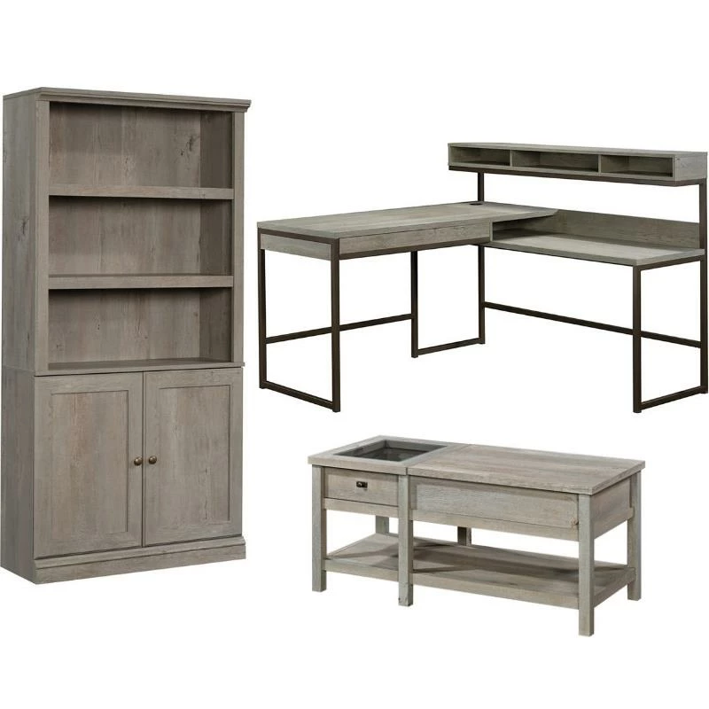Your office desk should be just a stylish as you are. Upgrade the look of your home workspace with the sophisticated style and elegant design of this L-shaped desk from the Manhattan Gate collection. Its spacious L-shaped top surface provides you with all the room you need for your must-have desk essentials like your laptop, work binders, notepads, and your coffee mug. You can even find a place for home décor items like decorative plants and picture frames. This corner writing desk features a storage drawer that opens and closes on smooth metal runners for convenient storage of miscellaneous supplies. It also features an elevated shelf with cubbyhole storage for easy access of items like envelopes and folders. This home office writing desk is finished on all sides for versatile placement throughout your home. It features a strong and lightweight 1” panel construction along with a powder coated metal frame. Finished in mystic oak, this handsome corner work station is just what your home is missing.