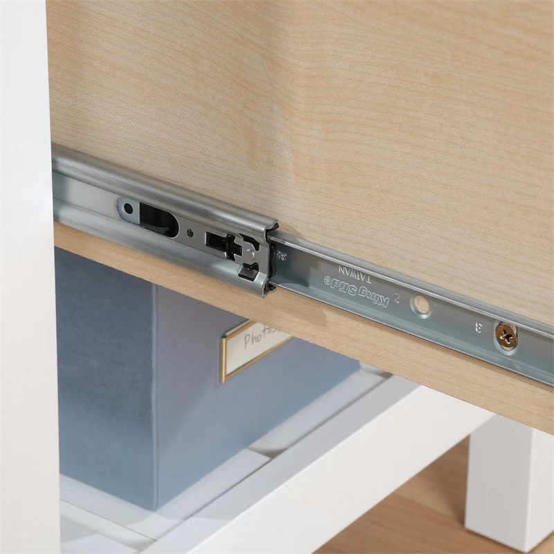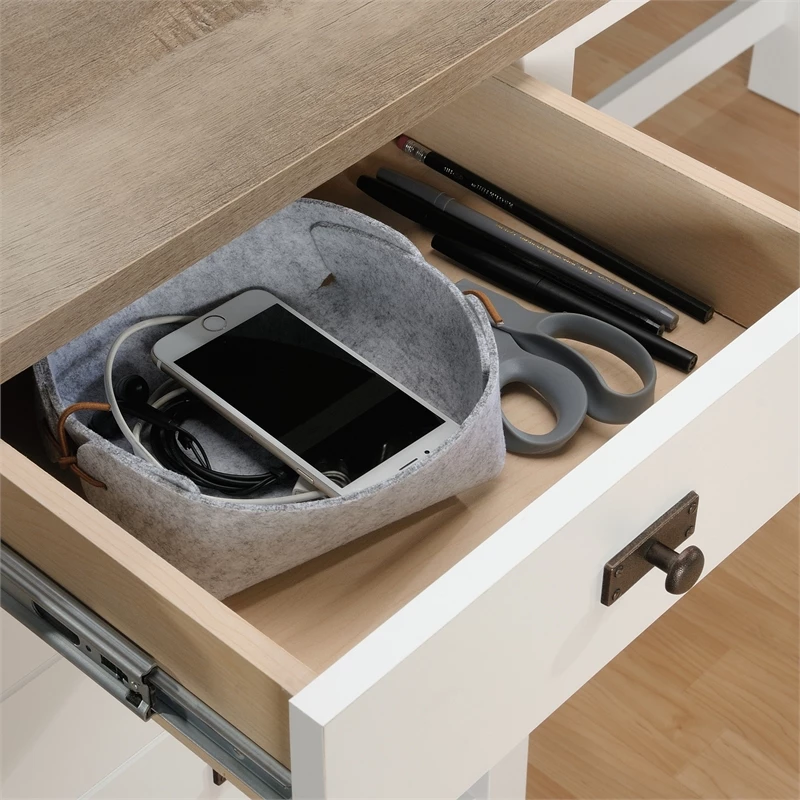 - Two (2) drawers feature full extension slides for items like, pens, paper, or a stapler