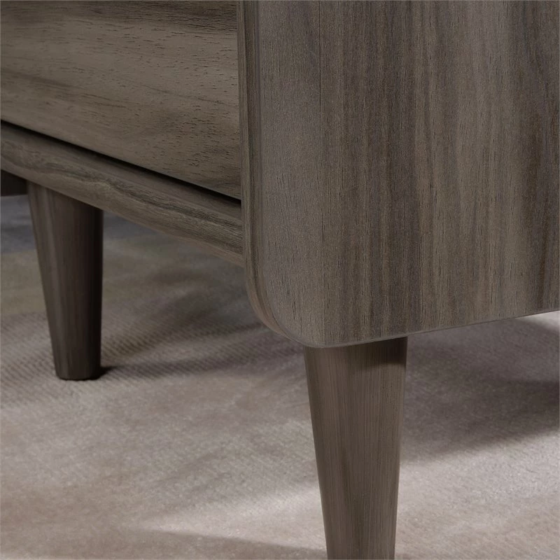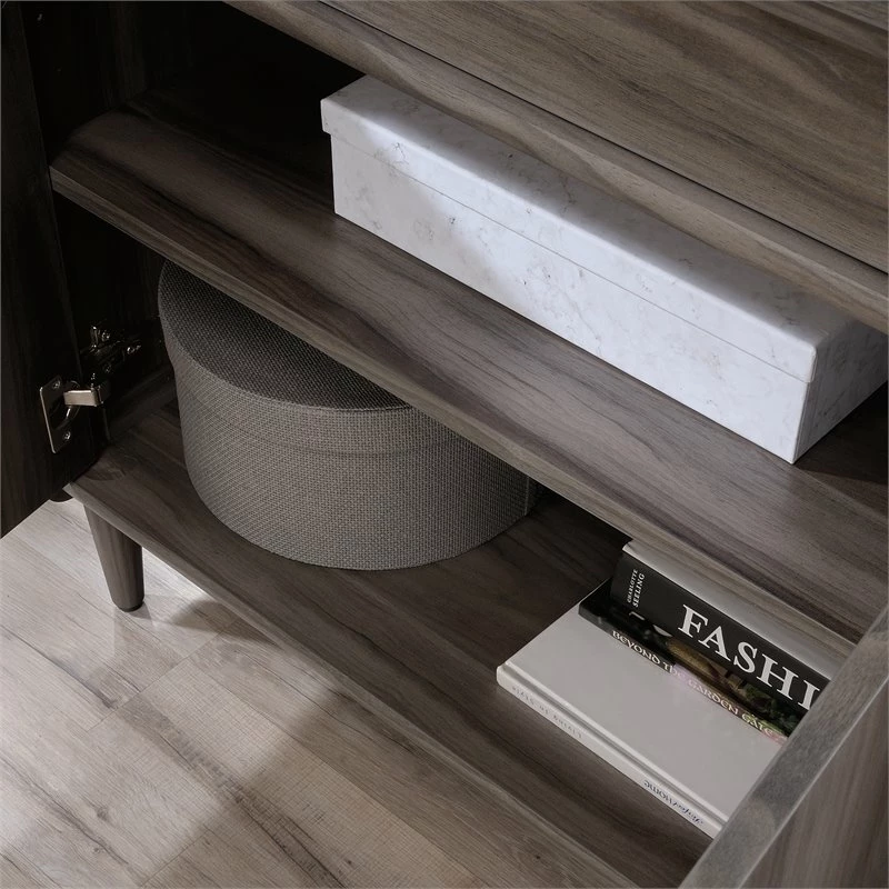 This library base cabinet from the ® collection brings various storage options to one sleek unit. A storage drawer with full extension slides makes this two-door base cabinet the perfect place for storing pens, chargers, sticky notes and more. The hidden storage behind the door features a large adjustable shelf to provide flexibility and accommodate items of various heights. You’ll never have an issue finding a place for that oversized book, storage for your printer, or somewhere to stash your books and binders. This base storage cabinet features a grommet hole with pass-through for cord management for your printer, a lamp, your cell phone charger and more. Finished on all sides for a polished look, this library storage cabinet will look great from every angle. Solid wood feet and a Jet Acaciaâ„¢ finish make this 2-door storage cabinet stylish and sturdy. For a midcentury modern design, look no further this this library cabinet.