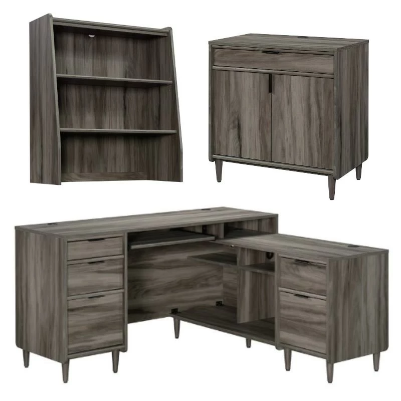 Engineered Wood L-Shaped Desk Gr Blaze in Jet Acacia
