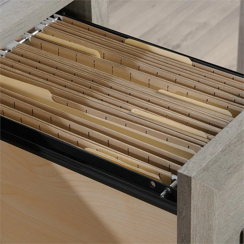 Searching for a little extra motivation? Updating your home office space can do just the trick! Give your home office or work space the style upgrade it needs when you add the charming style and design of this desk from the Home Square collection. This computer desk offers a spacious top surface that provides you with all the room you need for must-have desk essentials like your laptop, stacks of notepads, your collection of pens, and your hot cup of coffee. This home office desk features two drawers with full extension slides for easy access storage. The file drawer can hold letter-size hanging files so you can keep all your documents organized. Each drawer front features a decorative tile pattern for an extra touch of detail that is sure to stand out. This white computer desk also includes two lower shelves for additional storage of miscellaneous items. Finished on all sides in Mystic Oak accents, this beautiful computer desk will have you feeling ready to work.
