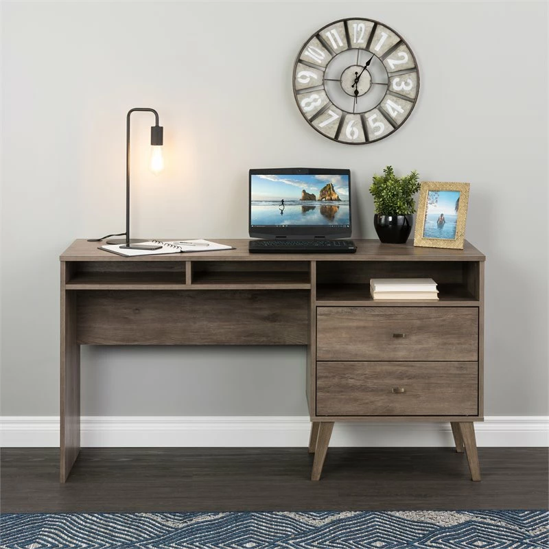 - Computer Desk with Side Storage and 2 Drawers in Drifted Gray x 1