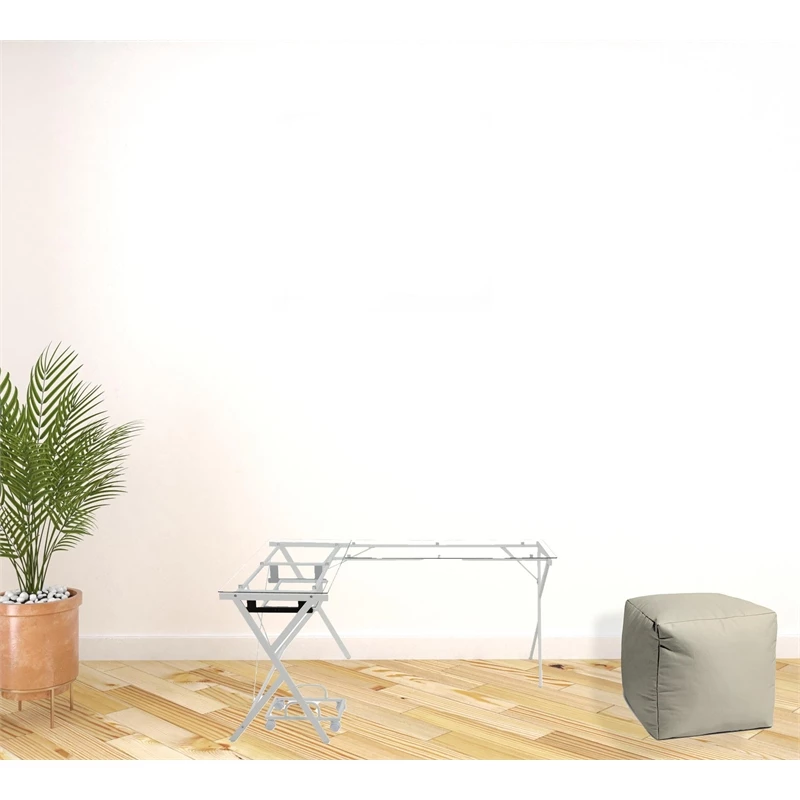This 62″ clear glass and white metal l shape computer desk will help to turn your office space into an executive suite. The L shape adds surface space in a space saving way, making this a great option for a corner. Forged with premium craftsmanship and design, this desk is built to last. 28″ H x 62″ W x 47″ D