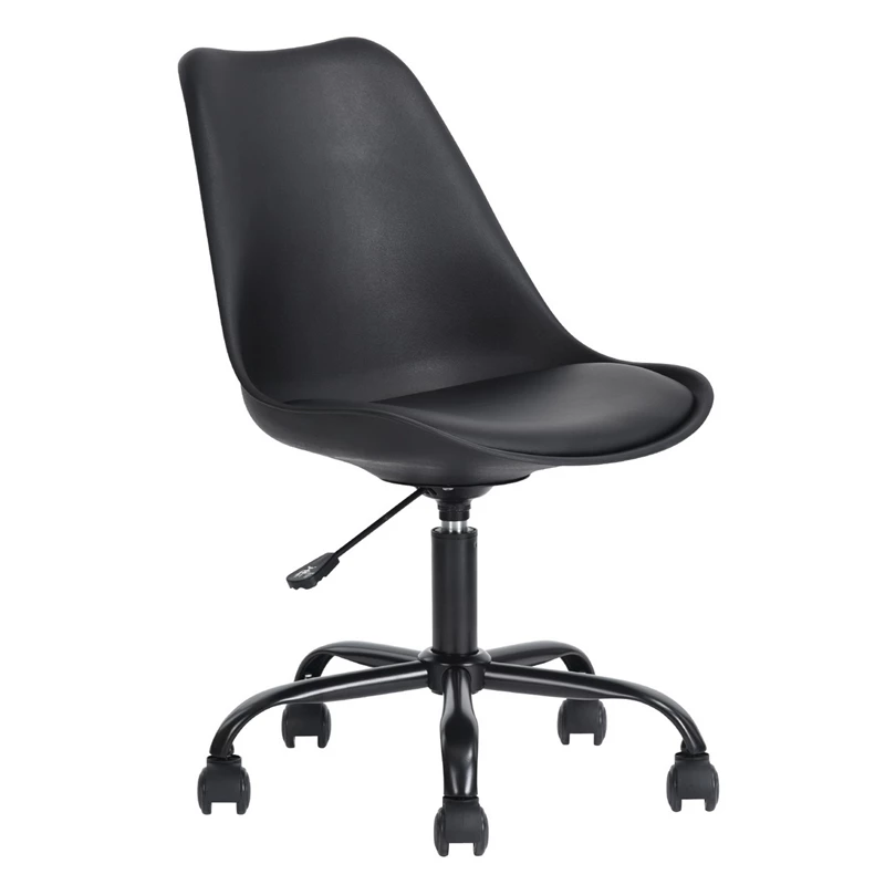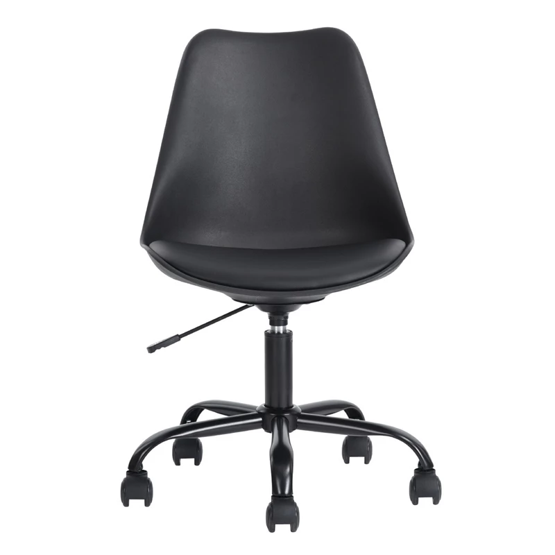 Give your home office a modern refresh with this desk chair. The bucket-style armless chair is made from molded plastic, making it easy to wipe down and clean. A padded, foam-filled seat cushion offers an inviting look and a comfortable feel when you’re working long hours to get the job done. This task chair is set on a 5-star base with casters, plus the swivel seat, meaning you can easily move around your office. Also, a convenient lever lets you adjust the seat height to suit your needs. Whether you’re sitting in class, studying for a final exam, or working to beat a tight deadline, this stylish chair will keep you cool and comfortable throughout your busy day.