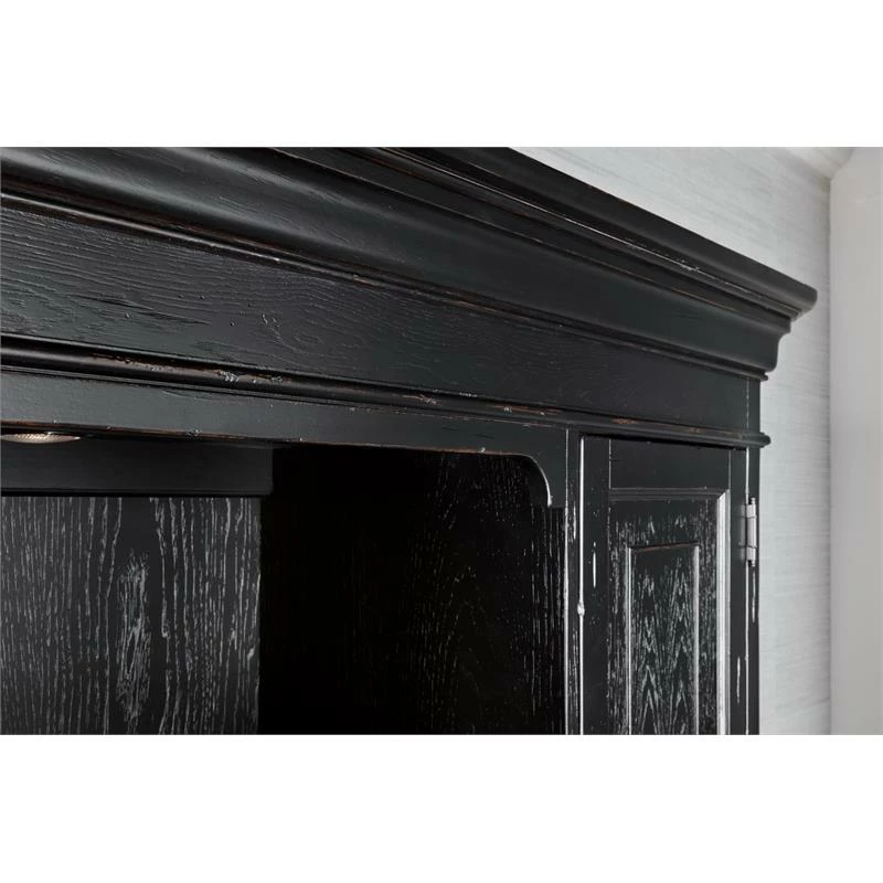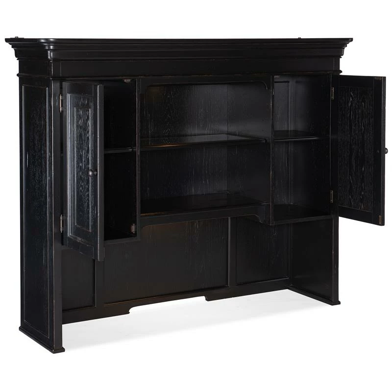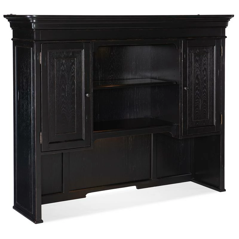 Casual yet refined and stylish, the versatile Bristowe Credenza Hutch is finished in Tuxedo, a casual black paint with touches of warm brown. This striking silhouette sets a professional and inviting tone for any work-from-home space, providing vital storage and display space. There’s two doors with one adjustable shelf behind each and one adjustable shelf and one fixed shelf in the center area, along with a task light in the monitor area and one puck light at the top of the center area controlled by a touch switch.