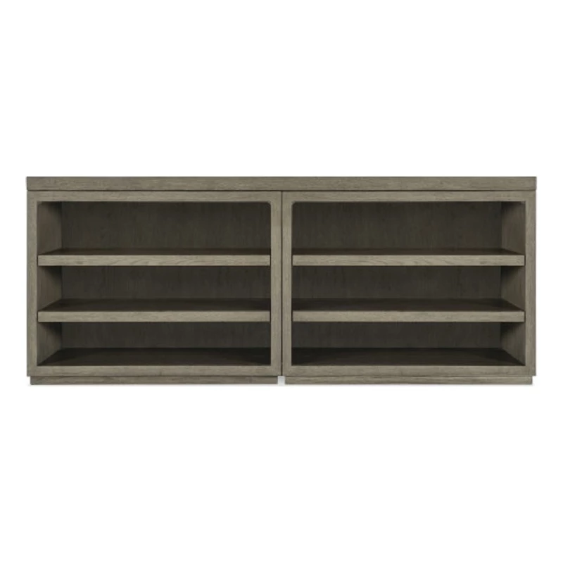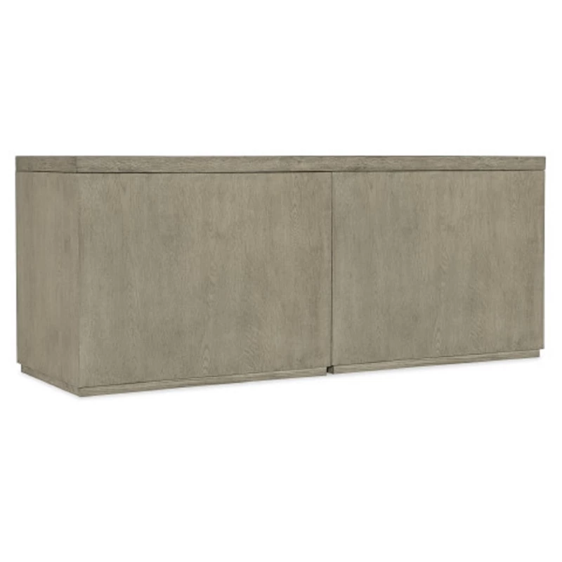 With a rustic weathered smoked Mink gray finish and clean modern lines, the Linville Falls Credenza has a 72-inch top and two open desk cabinets with a total of 4 adjustable shelves. Fully finished on the back, the credenza can be floated in a room. Capturing the essence of nature’s organic color palette and the aura of a rustic mountain cottage, Hooker Furniture introduces the Linville Falls collection. The whole home collection is designed for younger consumers looking for casual and contemporary furniture. Characterized by its rustic, weathered finish and clean lines paired with organic grain patterns, Linville Falls is constructed with split oak solids and veneers and has an overall organic aesthetic. It is featured in a soft Smoked Gray finish mixed with a Charred Black finish that is achieved through Shou Sugi Ban, a Japanese technique that creates an elegant burnt wood look. Its moderate scaling and fresh silhouettes offer a refreshing juxtaposition mixing old with new.