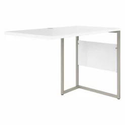 The Bush Business Furniture Hybrid 42W x 24D Desk Return/Bridge blends a durable work surface with sturdy metal legs to offer a stylish, long-lasting solution for the modern professional. The Return/Bridge works with coordinating Hybrid 48W, 60W and 72W Computer Desks (sold separately) to form a spacious U or L Shaped Desk. A built-in wire management grommet keeps cords and cables in order, so your work area remains free from unnecessary clutter. Find the perfect look for your space with five contemporary finish options: Black Walnut, Modern Hickory, Platinum Gray, Storm Gray and White. This modern desk attachment has been meticulously tested to meet or exceed ANSI/BIFMA quality standards for safety, durability and performance and is backed by the Bush Business Furniture 10 Year Manufacturer’s Warranty. Materials: Engineered wood and Laminates.