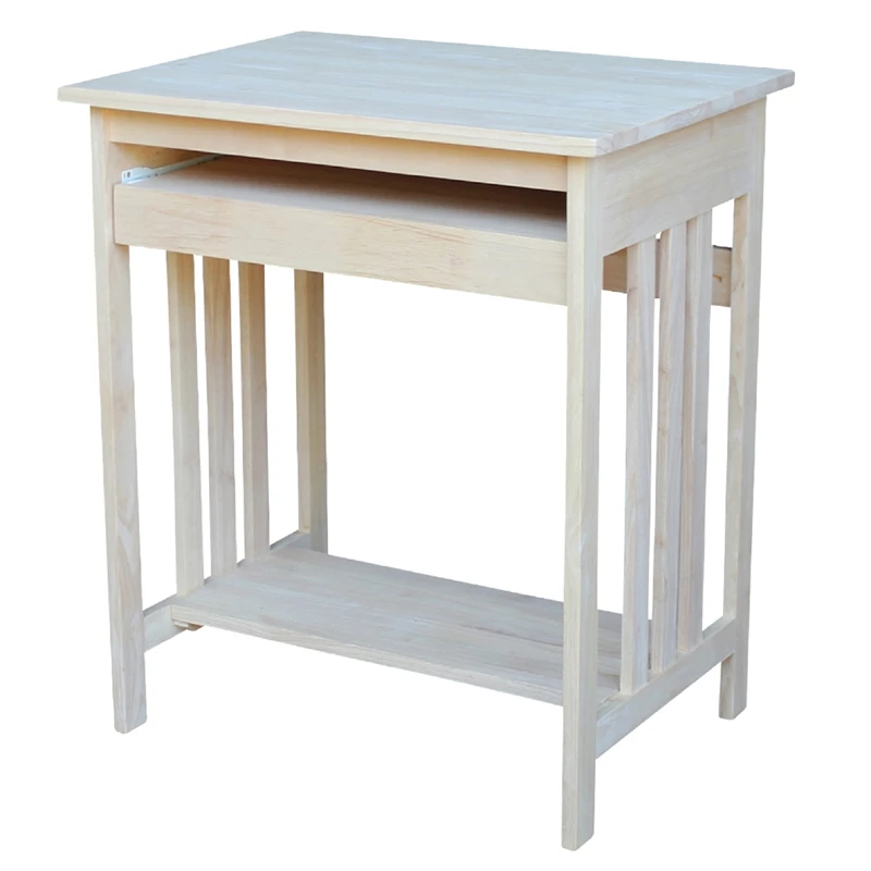 Get crafty with this unifinished Mission wood computer cart. Paint it black, paint it red, it’s all up to you. Love the color so much that you want to keep it the way it is? No problem! Featuring pullout tray and one lower shelf, this cart offers both functionality and style. It’s never too late to get creative.