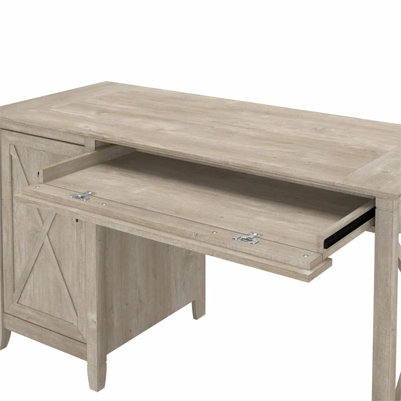 Designing your ideal home office is a breeze thanks to the Bush Furniture Key West Computer Desk with Storage. The 54W x 24D work surface offers plenty of room to spread out with a computer and paperwork as you surf the web, pay bills or check the mail. A pull out keyboard tray features a flip down front that folds up neatly when not in use. The drawer also provides a convenient place to keep your laptop or tablet and opens on smooth full-extension ball bearing slides. A built-in storage cabinet includes one adjustable shelf to accommodate reference materials and office supplies of various sizes. The sturdy and attractive post leg design allows the Computer Desk to support up to 200 pounds, so you can keep books and other equipment close by while you work. This home office desk is tested to meet ANSI/SOHO quality standards for safety and performance and is backed by a 1 Year Warranty.