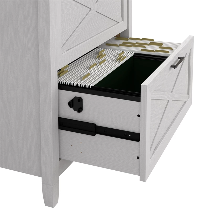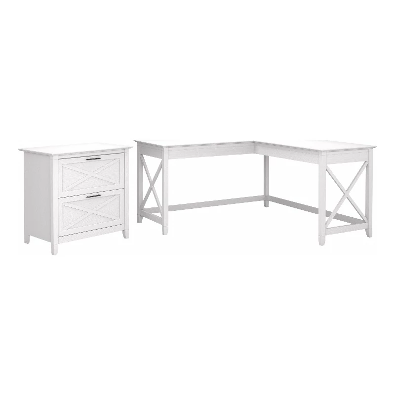The Bush Furniture Key West 60W L Shaped Desk with Lateral File Cabinet turns any room into a practical home office with easy going style. At 60W x 60D, the durable work surface is spacious enough to spread out with a computer, paperwork and more when taking on your task of the day or just browsing the web. A sturdy post leg design and thoughtful construction with quality materials give the L shaped computer desk a weight capacity of 200 pounds. The 2 drawer filing cabinet opens on smooth full-extension ball bearing slides for an easy reach to legal and letter size documents. Unique X pattern accents on side panels of the L Desk and the Cabinet’s file drawers create a relaxed appearance that blends seamlessly with coastal and farmhouse decor. This desk with drawers set is tested to meet ANSI/SOHO standards for safety and performance and is backed by a 1 Year Manufacturer’s Warranty.
