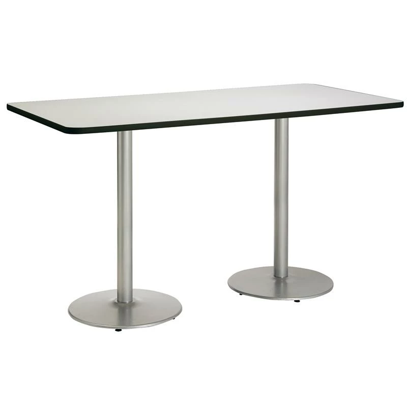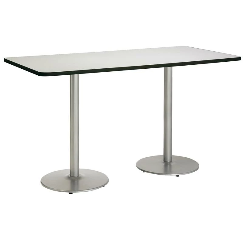 Mode office tables from KFI Seating are heavy duty tables designed for cafés, break rooms, meeting/conference areas, collaborative areas and a variety of other applications. The top has an durable edge that won’t crack or peel. The solid cast iron T-Legs have levelling glides to prevent the table from wobbling on uneven floors. The steel has a 3″ diameter and is made of 16 gauge steel. The table stands at bistro height. Tops hand-made and stained in the USA.