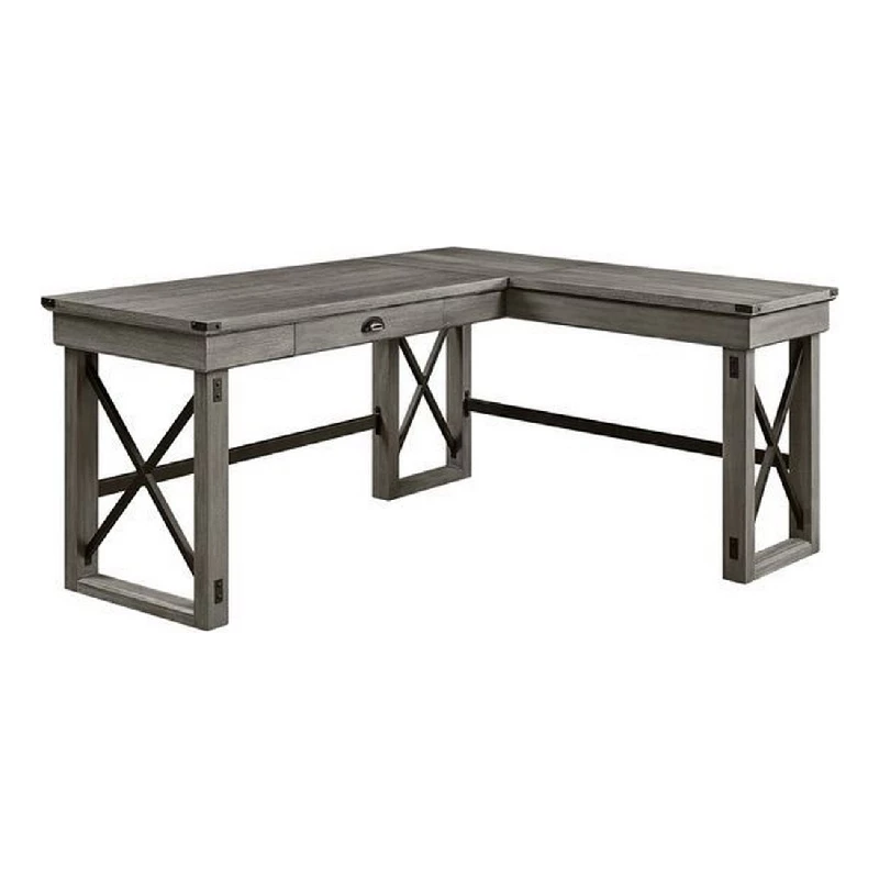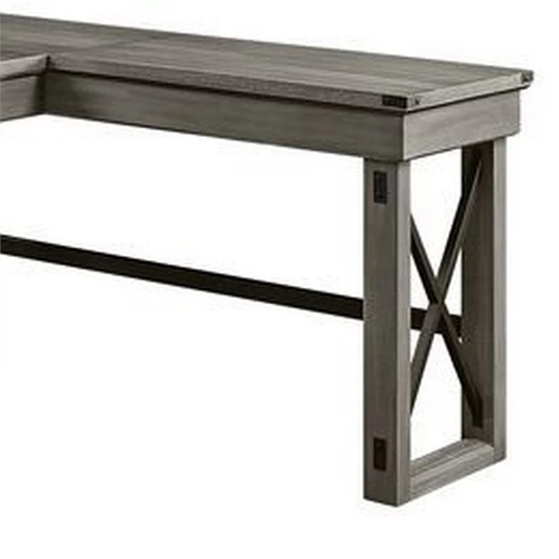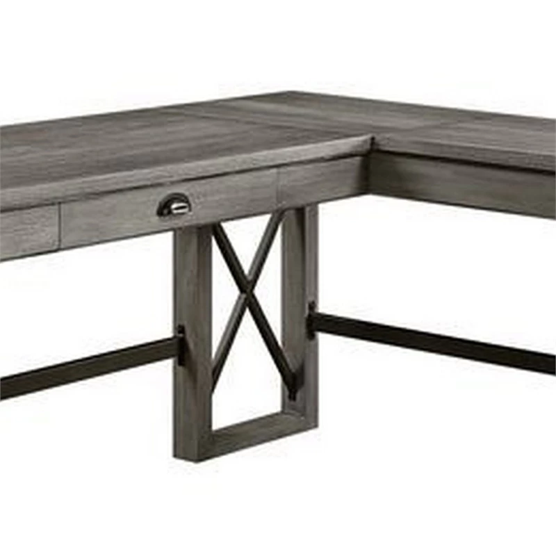Simple but practical, this L shaped writing desk has a large surface with lift top and single drawer that are enough to hold plenty of space for a laptop, desktop PC, or any other home office activities. The sled base and cross bar accents ensures excellent stability, strength, and durability to the desk.