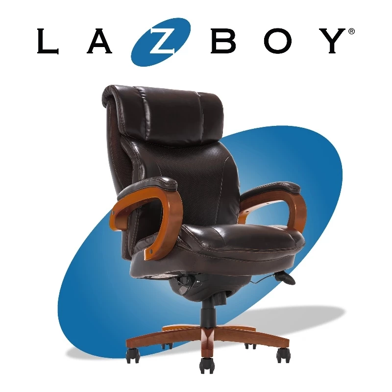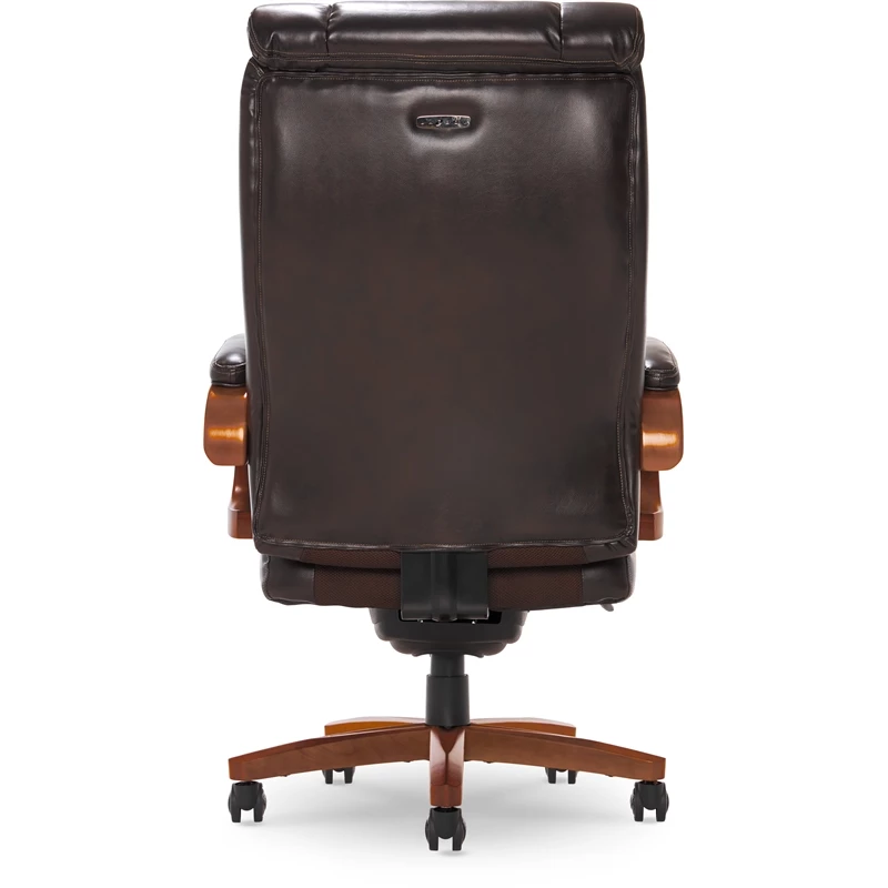 The La-Z-Boy Big and Tall Trafford Executive Office Chair combines a timeless design with premium comfort to add a refined look to any office space. This big and tall leather office chair delivers all the extra room you need at your desk. It features memory foam ComfortCore cushions that contour to your body and AIR Lumbar Technology to support your back at every angle. Soft, padded armrests and adjustable height, recline, and tilt functions allow you to find the perfect settings to stay comfortable all day. The brown bonded leather upholstery and darkly stained wood construction are an ideal complement for any classically styled office, giving you the ideal mixture of sophistication and support in an ergonomic office chair. The casters are intended for use on carpet and not recommended for use on tile or hardwood floors.