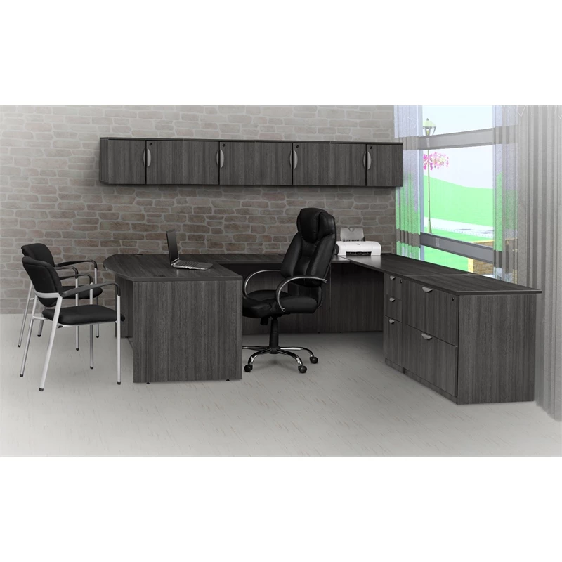 Legacy desk shells are the framework for a complete office. Customize with pedestals, returns, bridges or other storage options. This 71-inch long desk is a great choice for professional and home offices alike. An extra wide work surface with an executive bow front allows for plenty of room to spread out. Two wire management grommets keep cables clear of the work areas. Finished in an stylish Ash Grey laminate, this desk shell coordinates with other Legacy furniture. Adjustable glides on the bottom of the base keep the desktop level and are easy to adjust. The Legacy collection is constructed of a 1-inch thick thermal fused melamine laminate with a 3-millimeter commercial grade matching PVC edge. Laminates are scratch, stain and scald resistant. Legacy casegoods are backed by a 10-year limited manufacturer’s warranty.