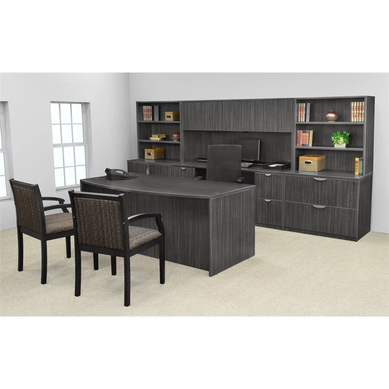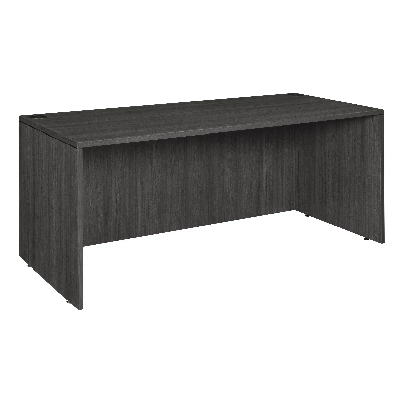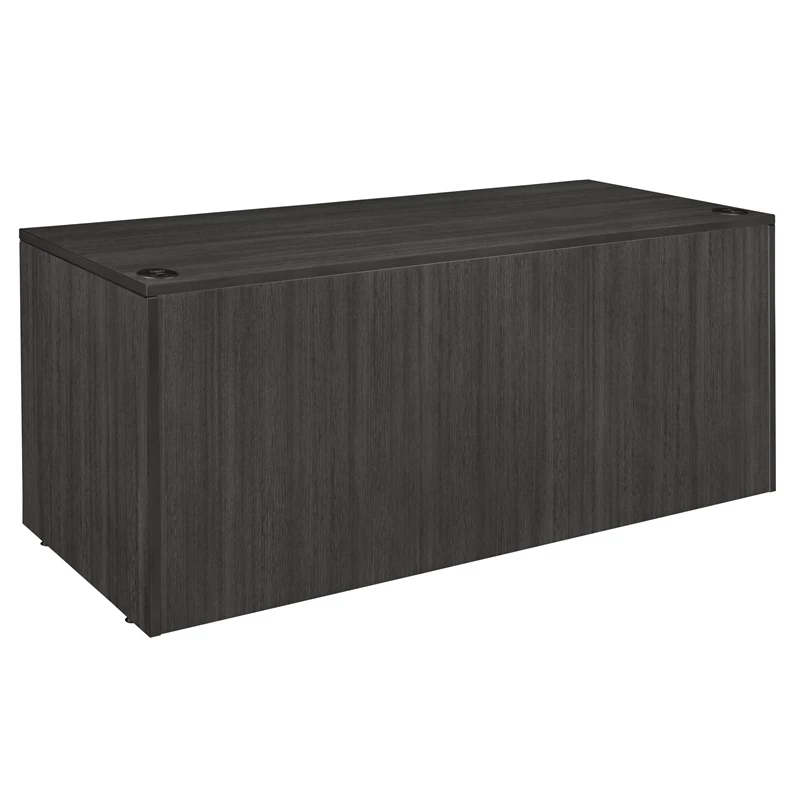 Legacy desk shells are the framework for a complete office. Customize with pedestals, returns, bridges or other storage options. This 71-inch long credenza can be used as part of a stately U-group or on its own and customize with mobile pedestals, hutches or other storage units. Two wire management grommets keep cables clear of the work areas. Finished in an stylish Ash Grey laminate, this desk shell coordinates with other Legacy furniture. Adjustable glides on the bottom of the base keep the desktop level and are easy to adjust. The Legacy collection is constructed of a 1-inch thick thermal fused melamine laminate with a 3-millimeter commercial grade matching PVC edge. Laminates are scratch, stain and scald resistant. Legacy casegoods are backed by a 10-year limited manufacturer’s warranty.