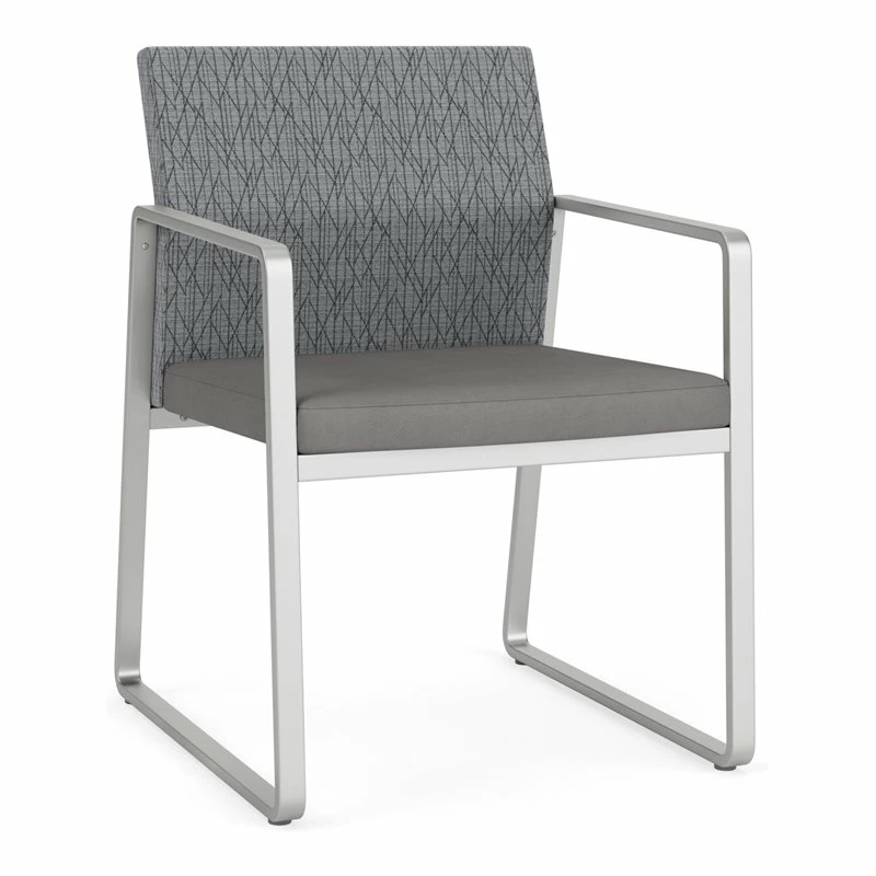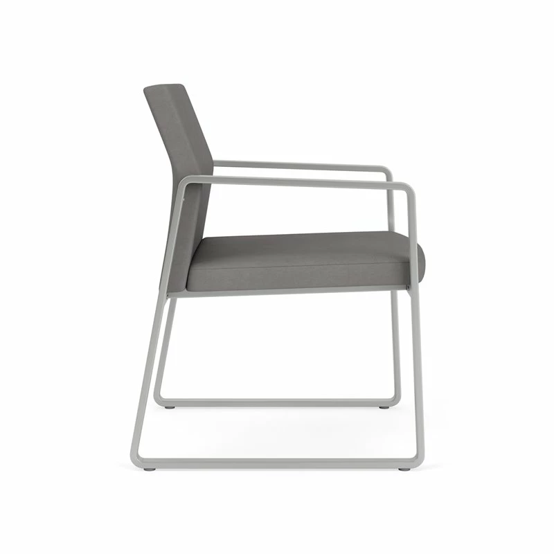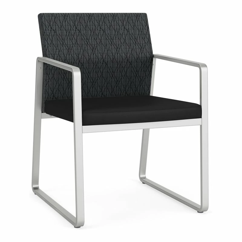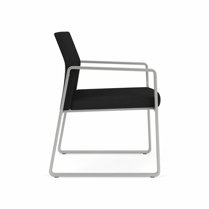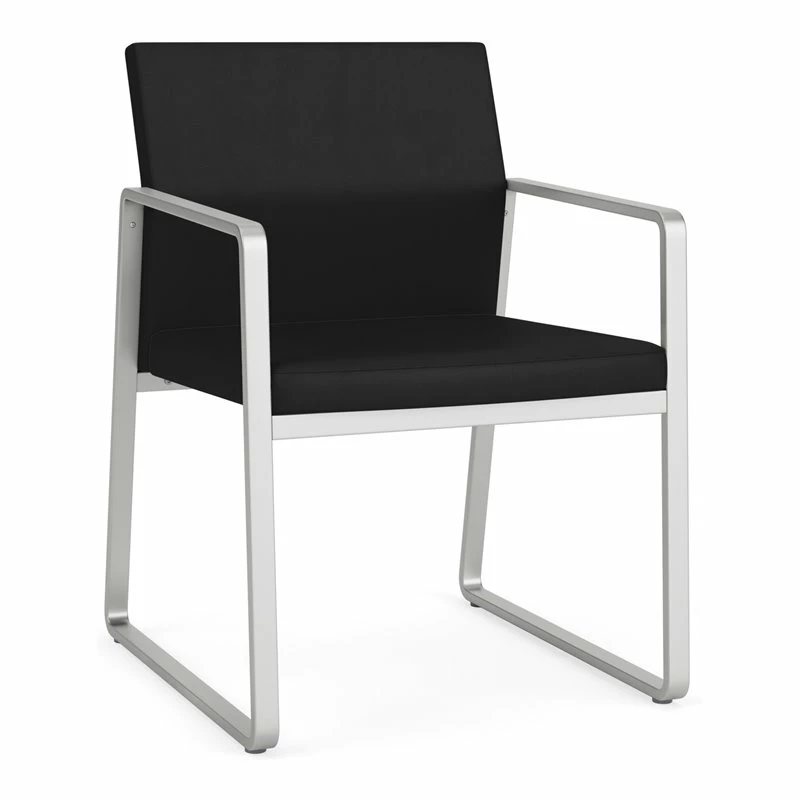 The Gansett Guest Chair is sleek yet sturdy. Gansett will impress from any angle with its distinctive sled base frame, gently sloped arms, and thoughtfully contoured backrest that radiate comfort and sophistication. Features include sturdy steel construction, durable powder coat finish, and a comfortable Matrex seat support system. Available in stain-resistant solid fabric, alluring designer fabric, and easy-clean, heavy-duty vinyl and polyurethane upholstery options. 300 lb weight capacity.