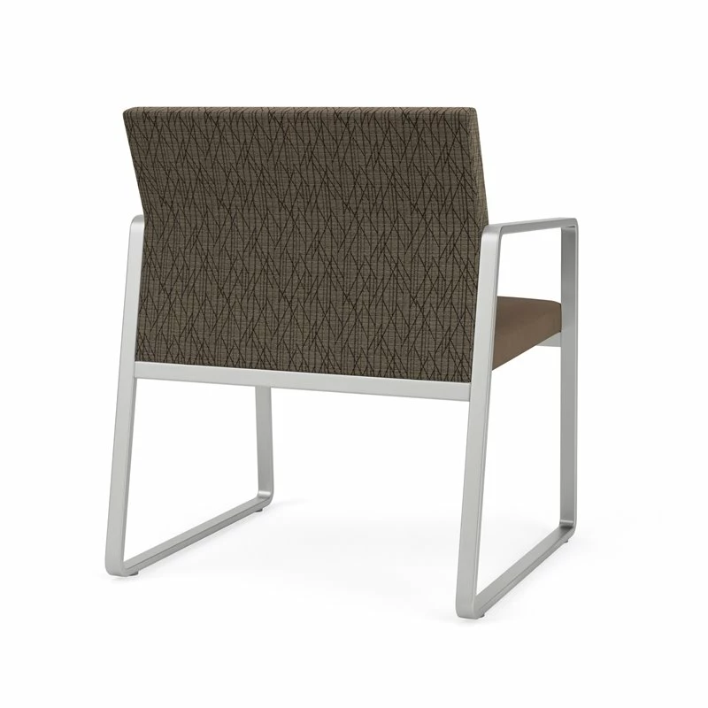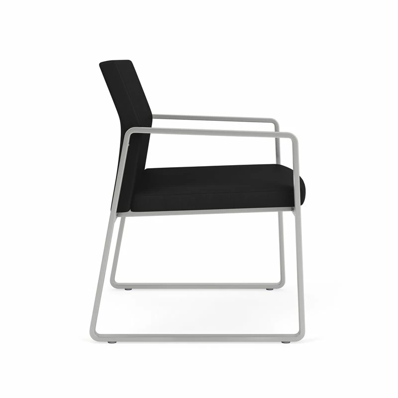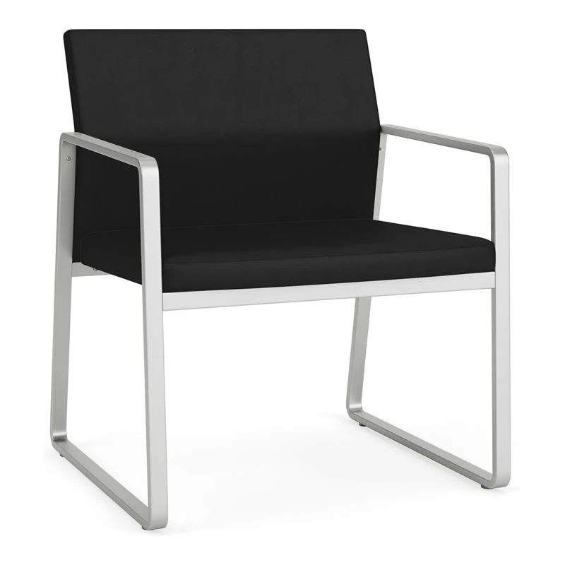 The Gansett Oversize Guest Chair is sleek yet sturdy. Gansett will impress from any angle with its distinctive sled base frame, gently sloped arms, and thoughtfully contoured backrest that radiate comfort and sophistication. Features include sturdy steel construction, durable powder coat finish, and a comfortable Matrex seat support system. Available in stain-resistant solid fabric, alluring designer fabric, and easy-clean, heavy-duty vinyl and polyurethane upholstery options. 400 lb weight capacity.