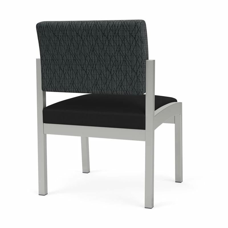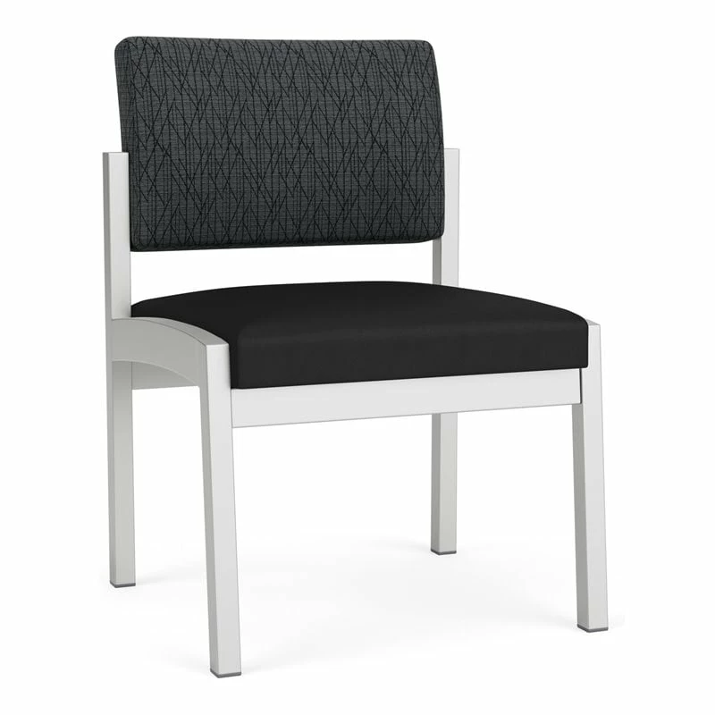 The Lenox Steel armless guest chair with its graceful transitional styling and upholstered seat and back cushions will give your space a light, airy look. Features include sturdy steel construction, durable powder coat finish, and a comfortable Matrex seat support system. Available in stain-resistant solid fabric, alluring designer fabric, and easy-clean, heavy-duty vinyl and polyurethane upholstery options. 300 lb weight capacity.