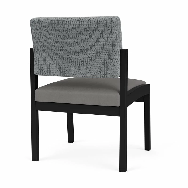 The Lenox Steel armless guest chair with its graceful transitional styling and upholstered seat and back cushions will give your space a light, airy look. Features include sturdy steel construction, durable powder coat finish, and a comfortable Matrex seat support system. Available in stain-resistant solid fabric, alluring designer fabric, and easy-clean, heavy-duty vinyl and polyurethane upholstery options. 300 lb weight capacity.