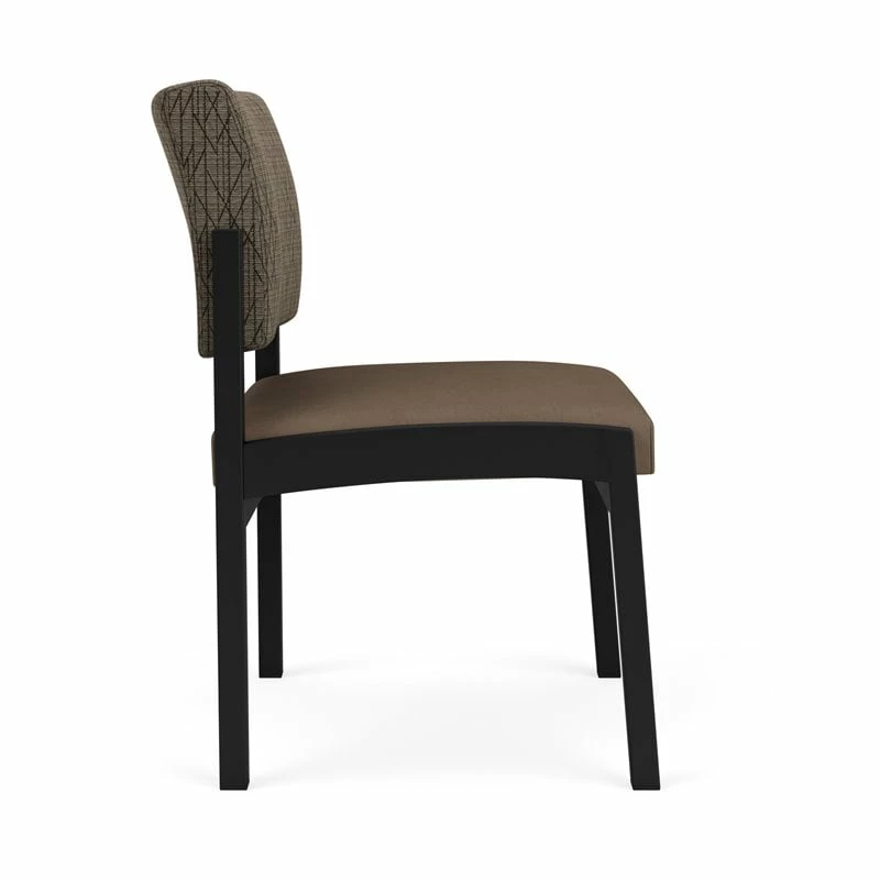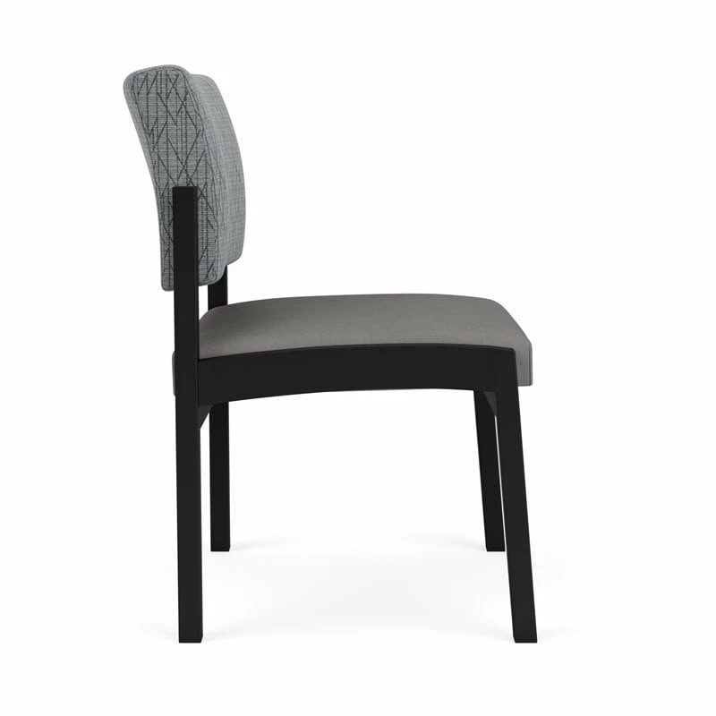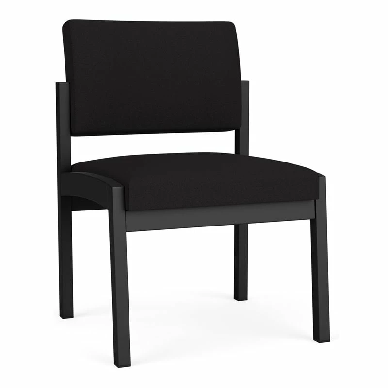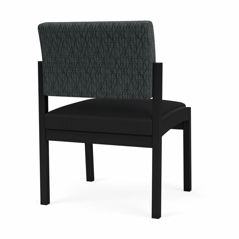 The Lenox Steel armless guest chair with its graceful transitional styling and upholstered seat and back cushions will give your space a light, airy look. Features include sturdy steel construction, durable powder coat finish, and a comfortable Matrex seat support system. Available in stain-resistant solid fabric, alluring designer fabric, and easy-clean, heavy-duty vinyl and polyurethane upholstery options. 300 lb weight capacity.