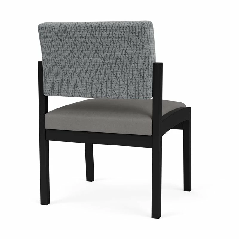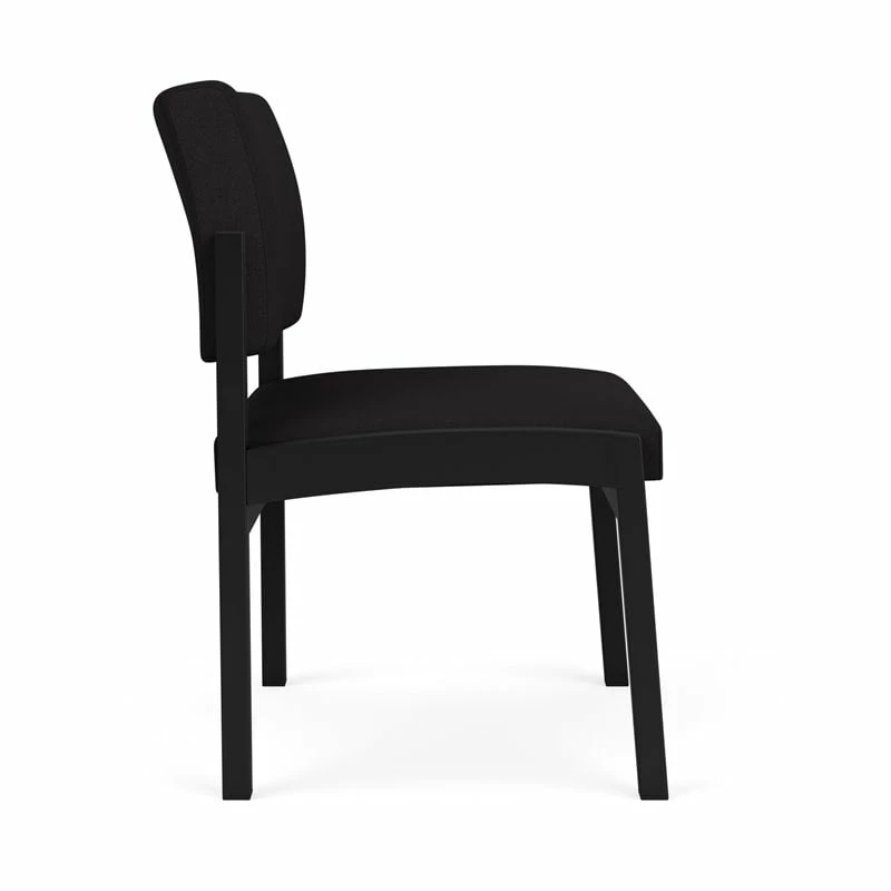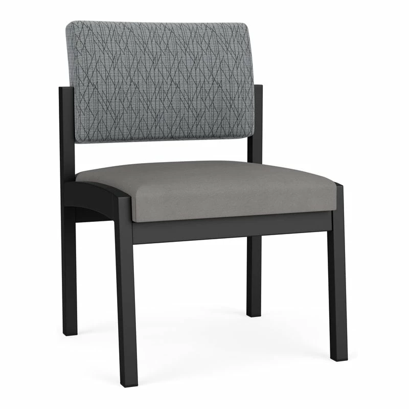 The Lenox Steel armless guest chair with its graceful transitional styling and upholstered seat and back cushions will give your space a light, airy look. Features include sturdy steel construction, durable powder coat finish, and a comfortable Matrex seat support system. Available in stain-resistant solid fabric, alluring designer fabric, and easy-clean, heavy-duty vinyl and polyurethane upholstery options. 300 lb weight capacity.