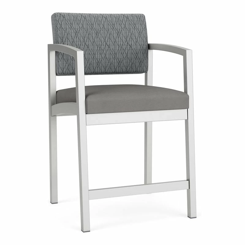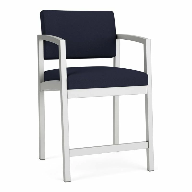 The Lenox Steel hip chair with its graceful transitional styling, gently sloped arm design, and upholstered seat and back cushions will give your space a light, airy look. Features include sturdy steel construction, durable powder coat finish, comfortable Matrex seat support system and a sturdy steel footrest. Available in stain-resistant solid fabric, alluring designer fabric, and easy-clean, heavy-duty vinyl and polyurethane upholstery options. 300 lb weight capacity.