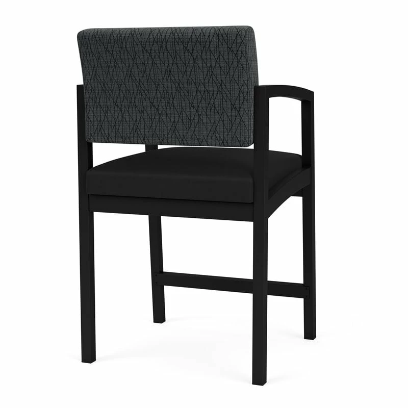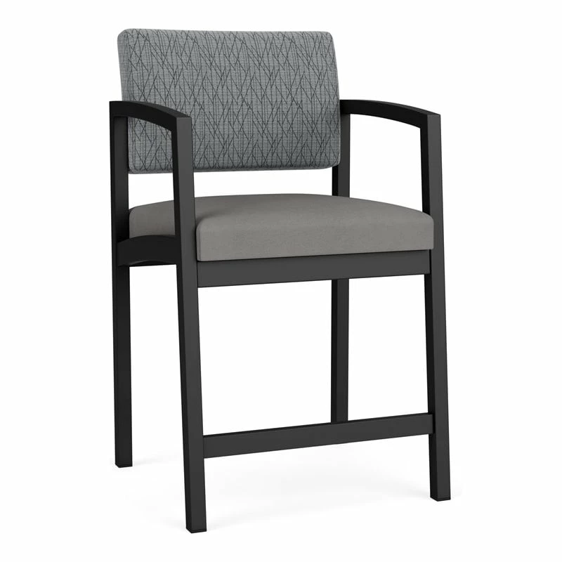 The Lenox Steel hip chair with its graceful transitional styling, gently sloped arm design, and upholstered seat and back cushions will give your space a light, airy look. Features include sturdy steel construction, durable powder coat finish, comfortable Matrex seat support system and a sturdy steel footrest. Available in stain-resistant solid fabric, alluring designer fabric, and easy-clean, heavy-duty vinyl and polyurethane upholstery options. 300 lb weight capacity.