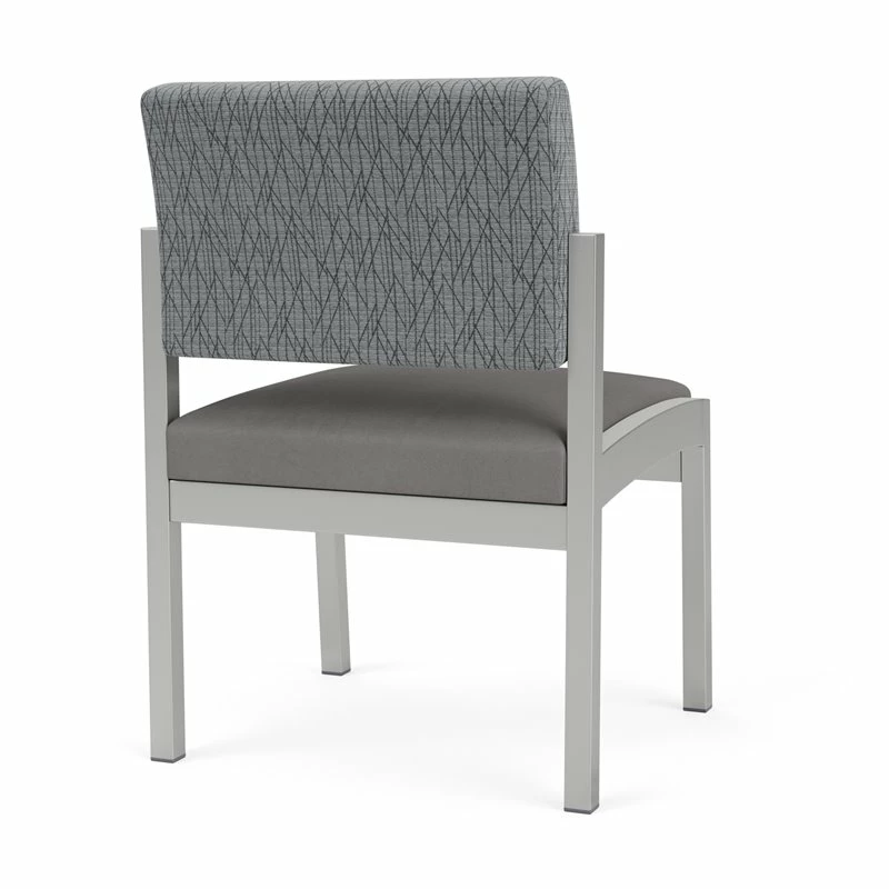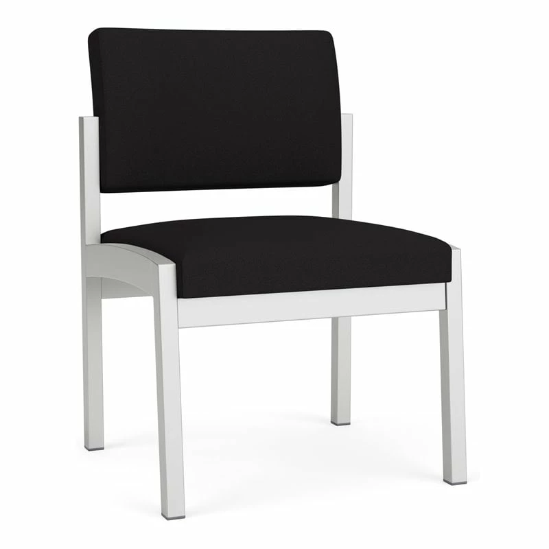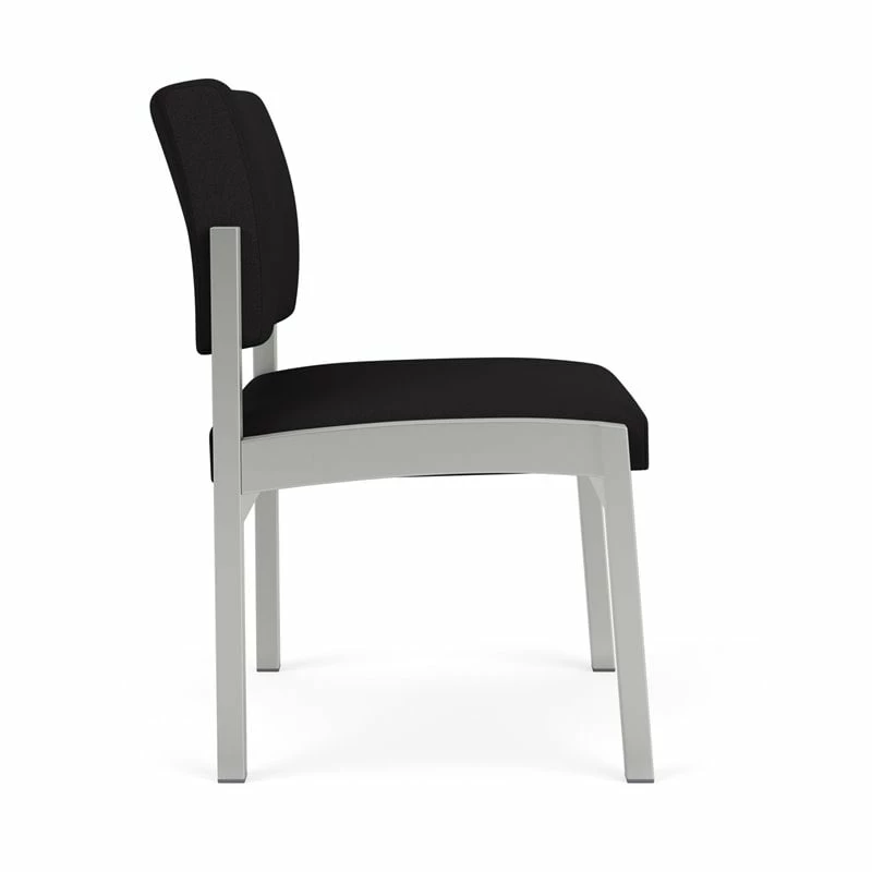 The Lenox Steel armless guest chair with its graceful transitional styling and upholstered seat and back cushions will give your space a light, airy look. Features include sturdy steel construction, durable powder coat finish, and a comfortable Matrex seat support system. Available in stain-resistant solid fabric, alluring designer fabric, and easy-clean, heavy-duty vinyl and polyurethane upholstery options. 300 lb weight capacity.