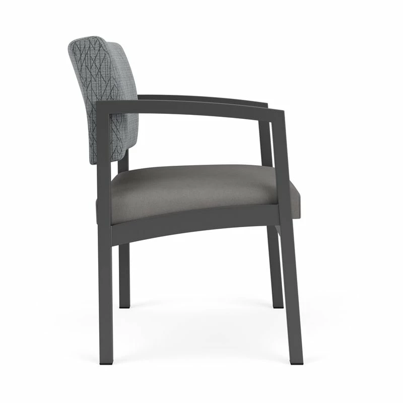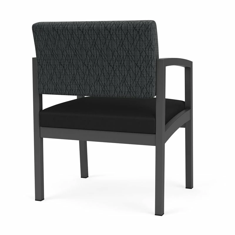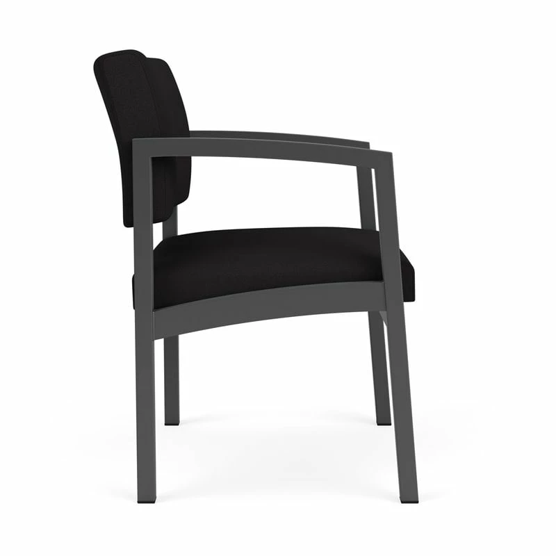 The Lenox Steel oversize guest chair with its graceful transitional styling, gently sloped arm design, and upholstered seat and back cushions will give your space a light, airy look. Features include sturdy steel construction, durable powder coat finish, and a comfortable Matrex seat support system. Available in stain-resistant solid fabric, alluring designer fabric, and easy-clean, heavy-duty vinyl and polyurethane upholstery options. 400 lb weight capacity.