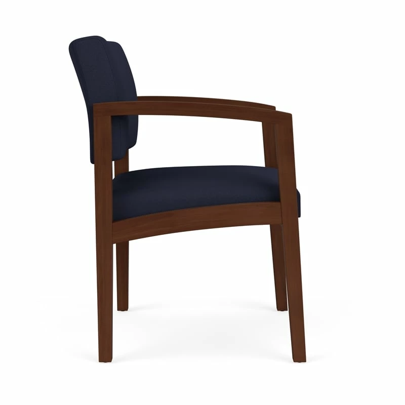 The Lenox Wood guest chair with its graceful transitional styling, gently sloped arm design, and upholstered seat and back cushions will give your space a light, airy look. Features include sturdy hardwood construction, durable lacquer finish, and a comfortable Matrex seat support system. Available in stain-resistant solid fabric, alluring designer fabric, and easy-clean, heavy-duty vinyl and polyurethane upholstery options.