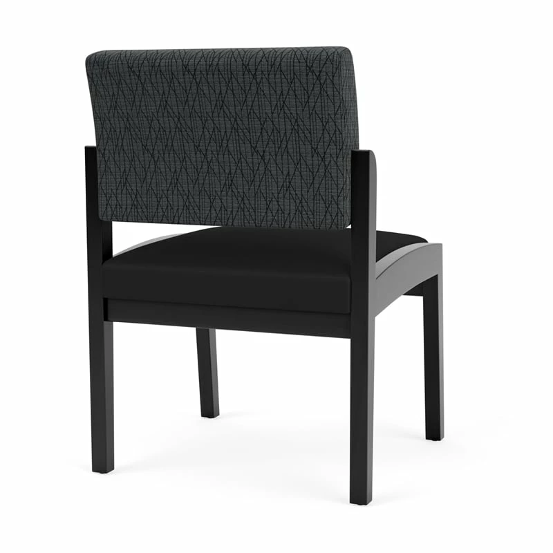- Solid hardwood armless guest chair with upholstered seat and back