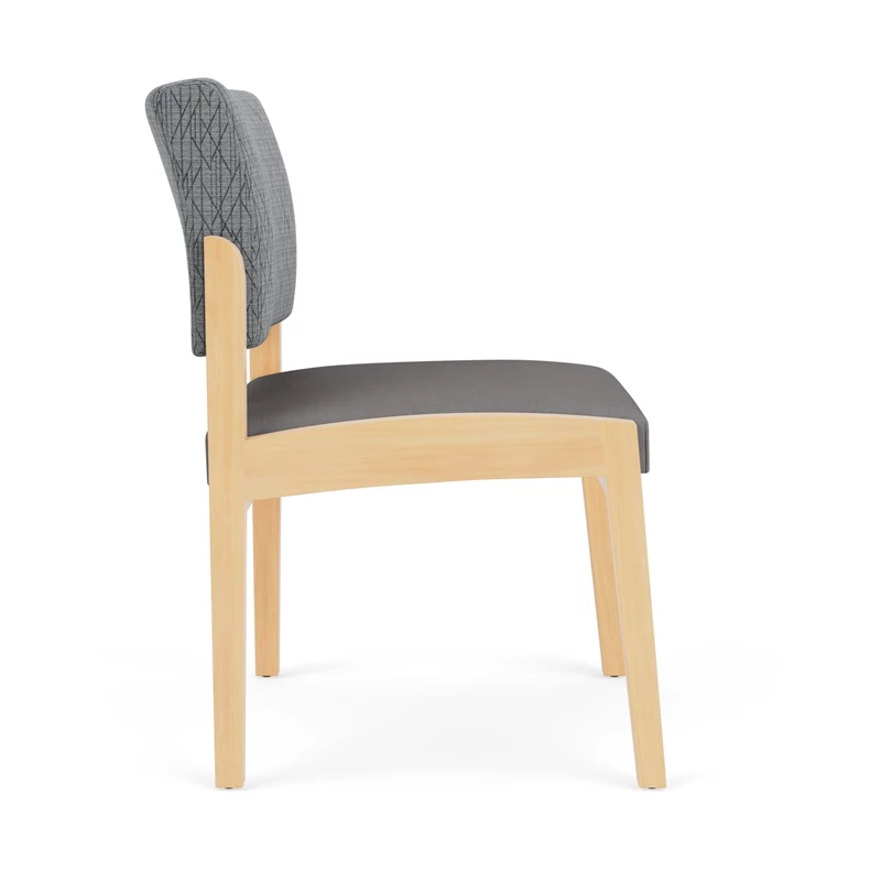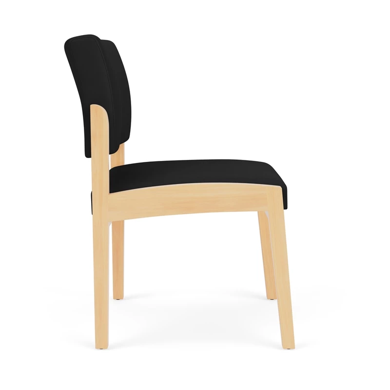 - Solid hardwood armless guest chair with upholstered seat and back