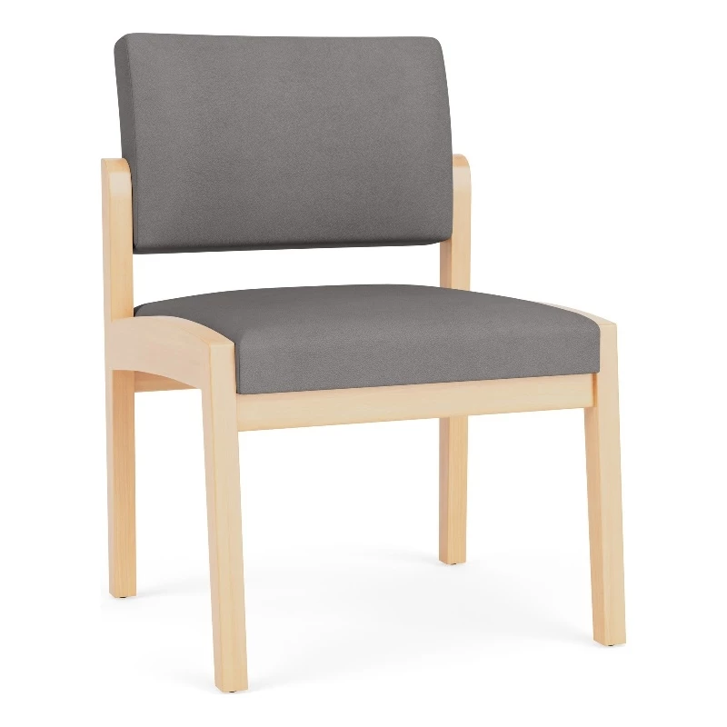 The Lenox Wood armless guest chair with its graceful transitional styling and upholstered seat and back cushions will give your space a light, airy look. Features include sturdy hardwood construction, durable lacquer finish, and a comfortable Matrex seat support system. Available in stain-resistant solid fabric, alluring designer fabric, and easy-clean, heavy-duty vinyl and polyurethane upholstery options.